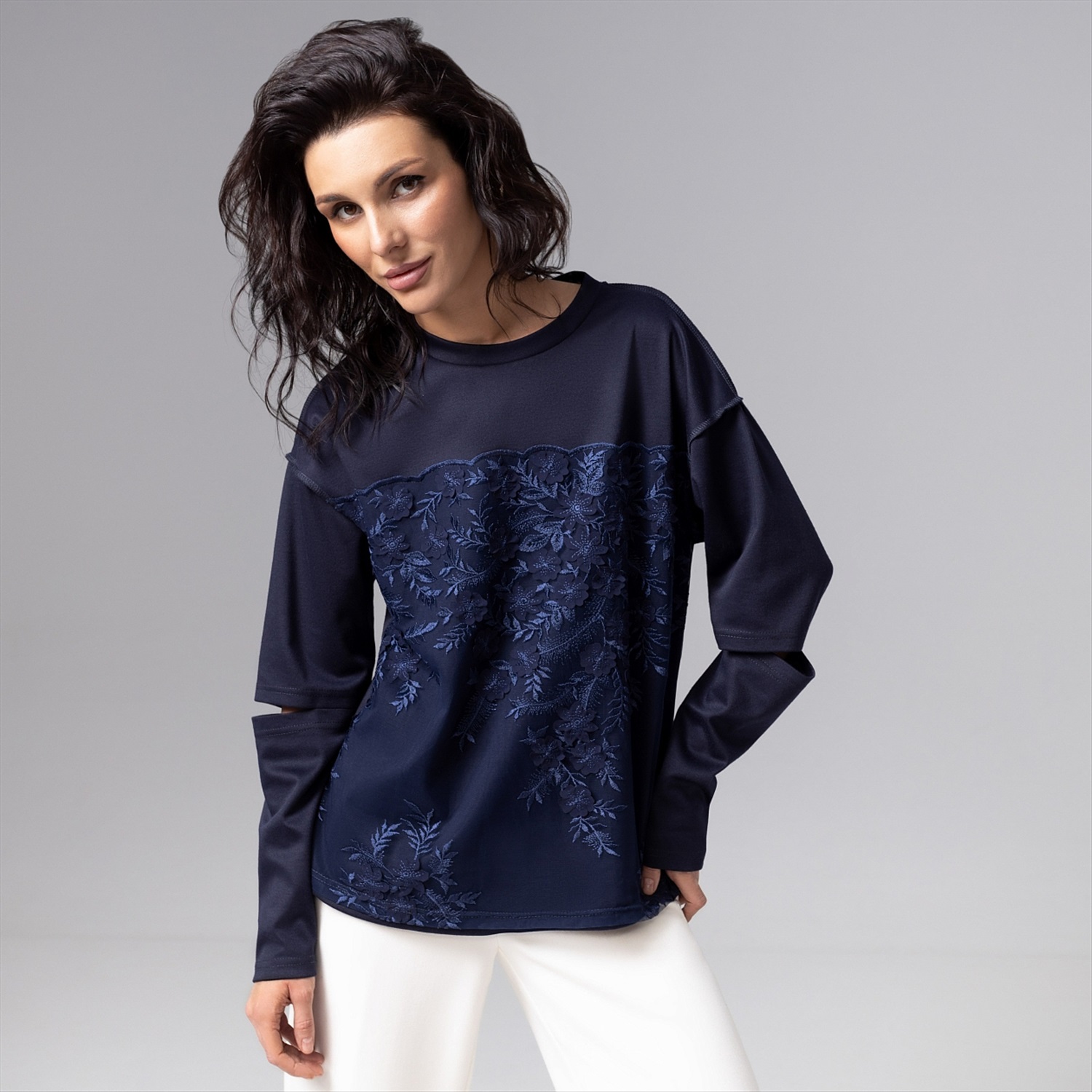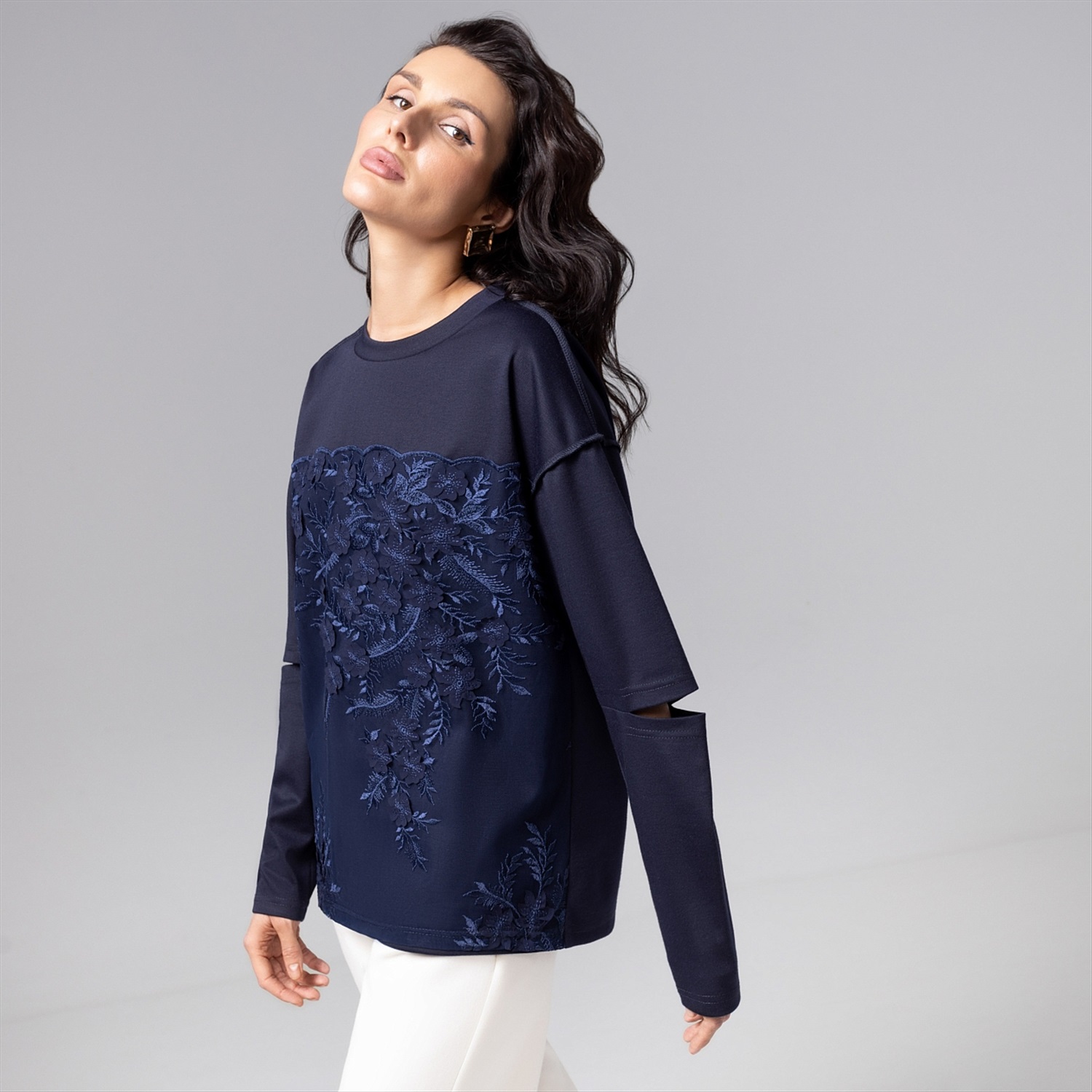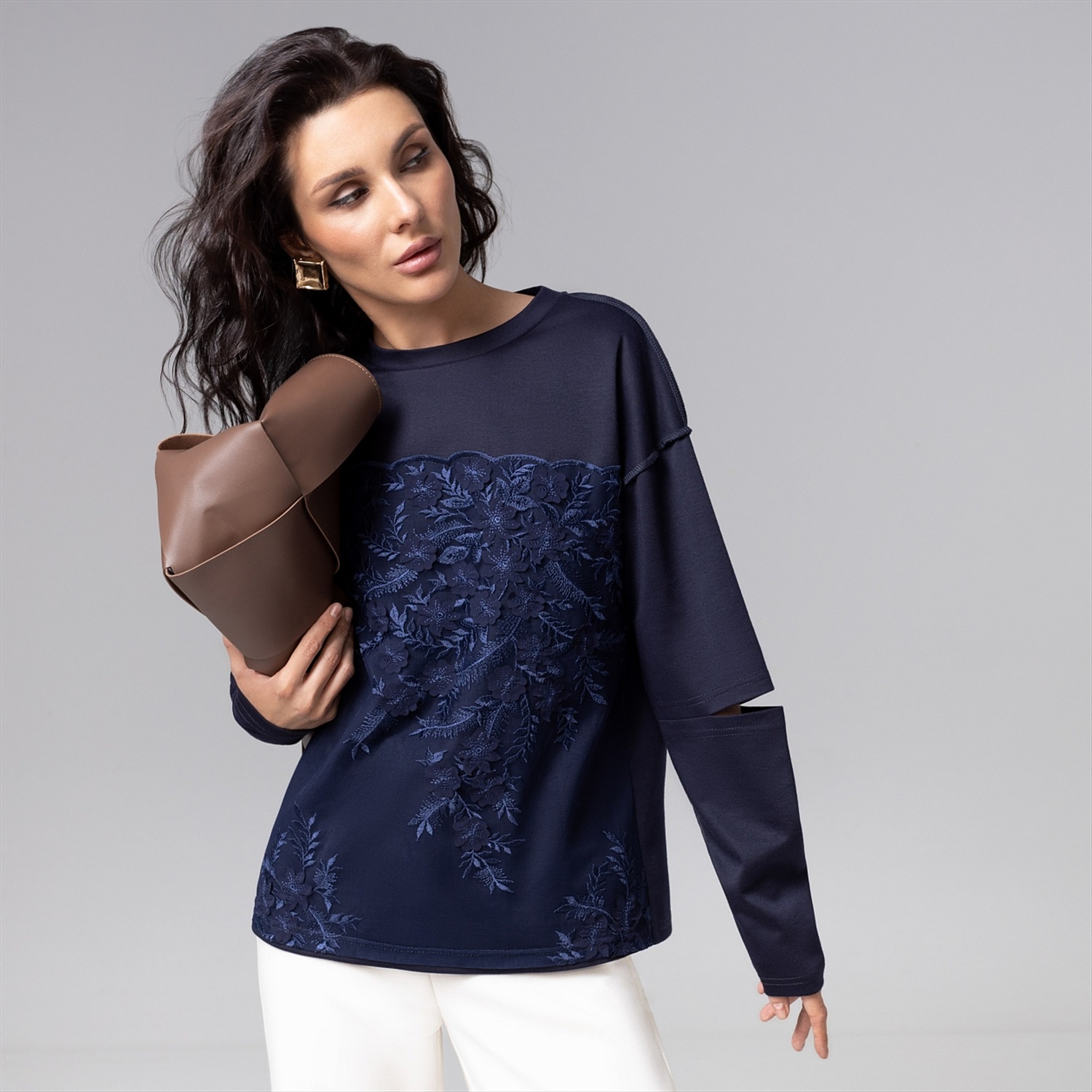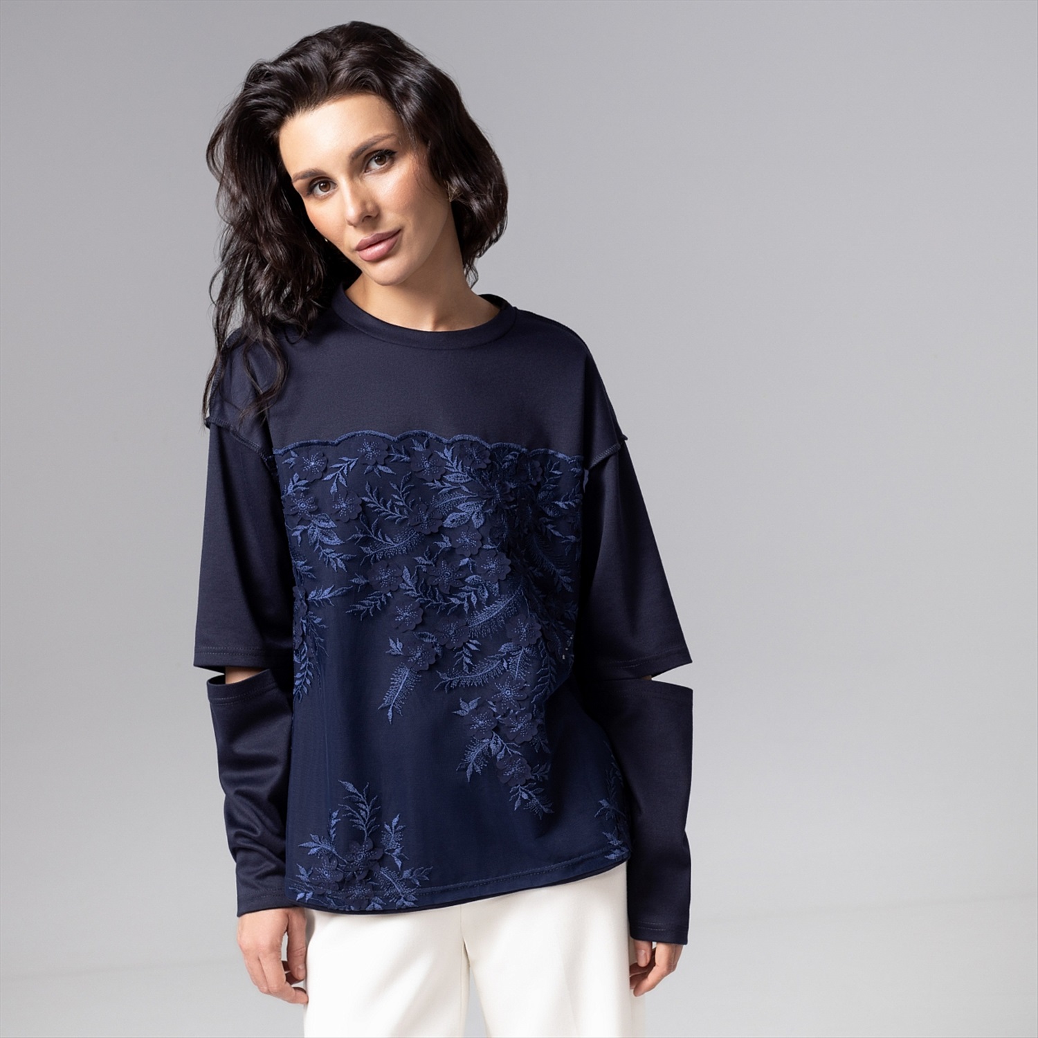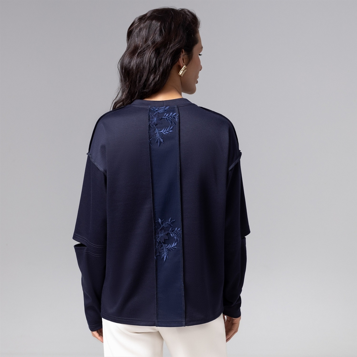 Лонгслив с разрезами на рукавах, Образ решает (синий) 8 фото