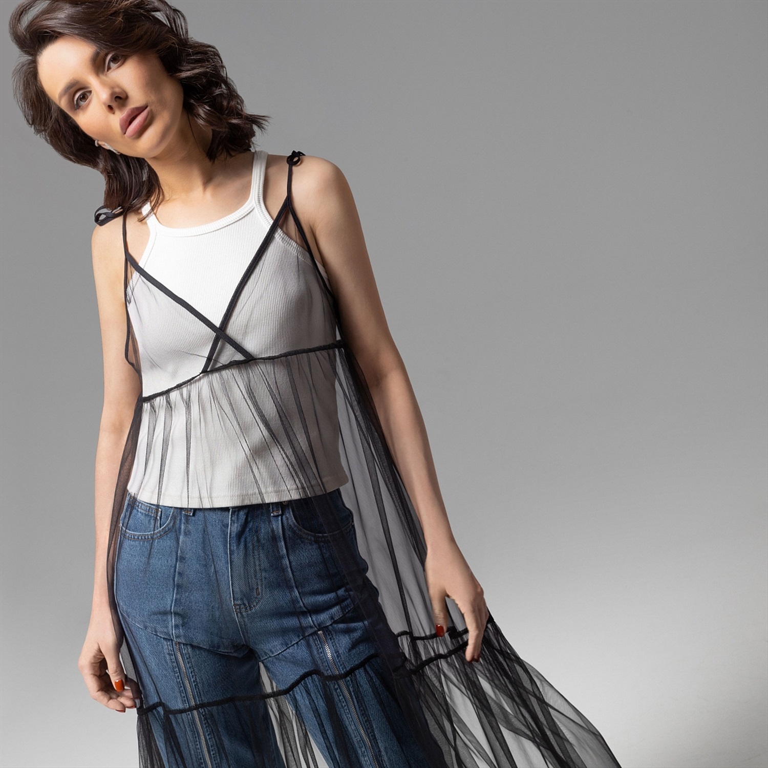 Водолазка полупрозрачная с топом, Внешнее великолепие (gray 2 в 1) 6 фото