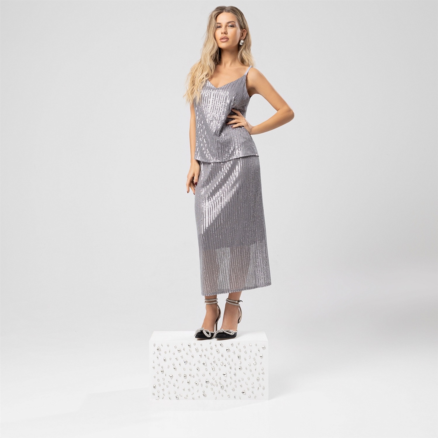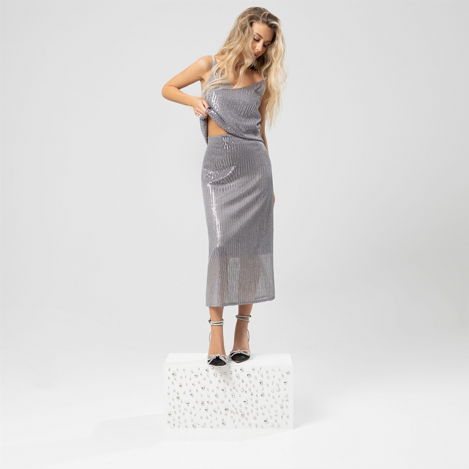 Юбка с пайетками на подкладе, Сияние гламура (royal silver) 6 фото