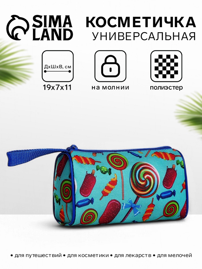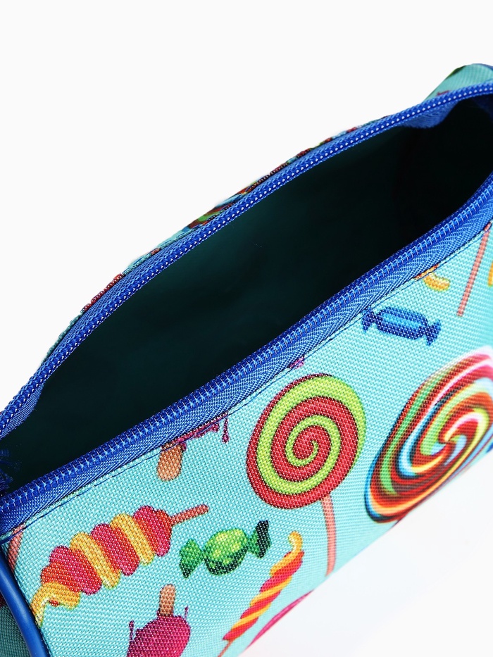 Косметичка простая на молнии, объёмная, с ручкой, с рисунком «Сладости», бирюзовая 3 фото