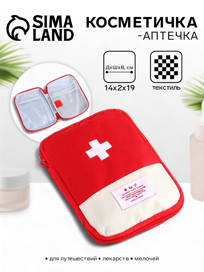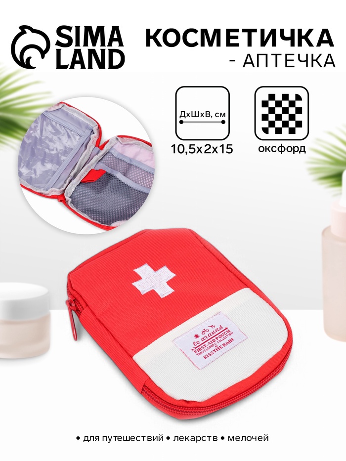 Косметичка-аптечка дорожная на молнии, красная 3 фото