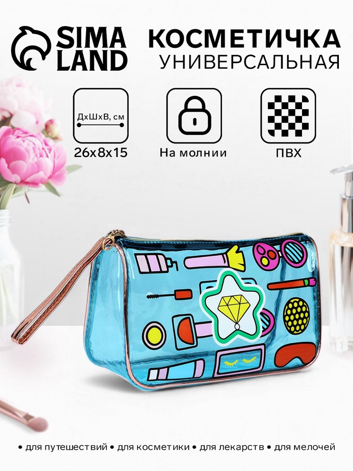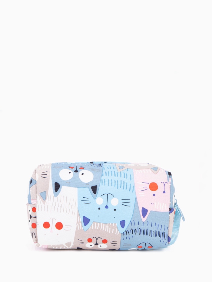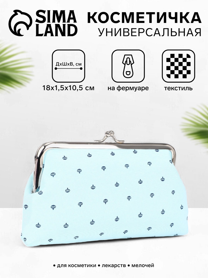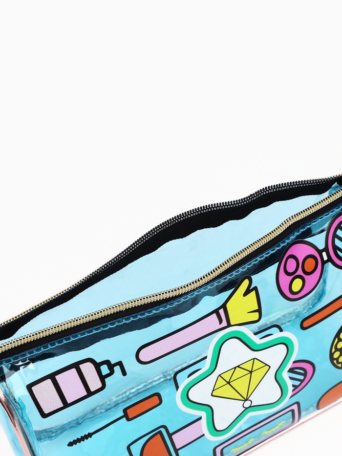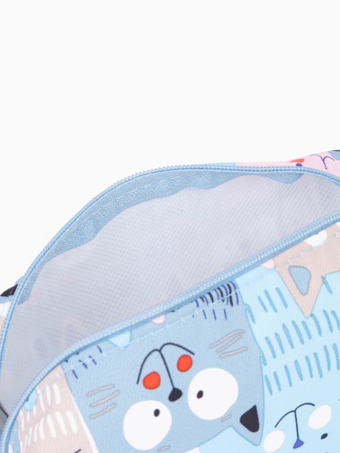 Косметичка женская на молнии объёмная, маленькая, с принтом, голубая 3 фото