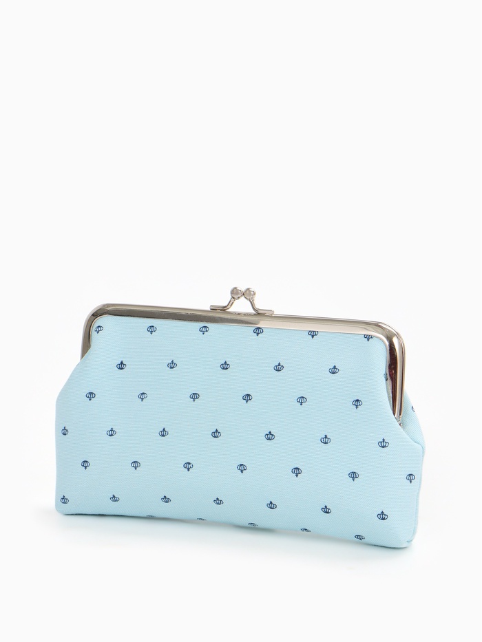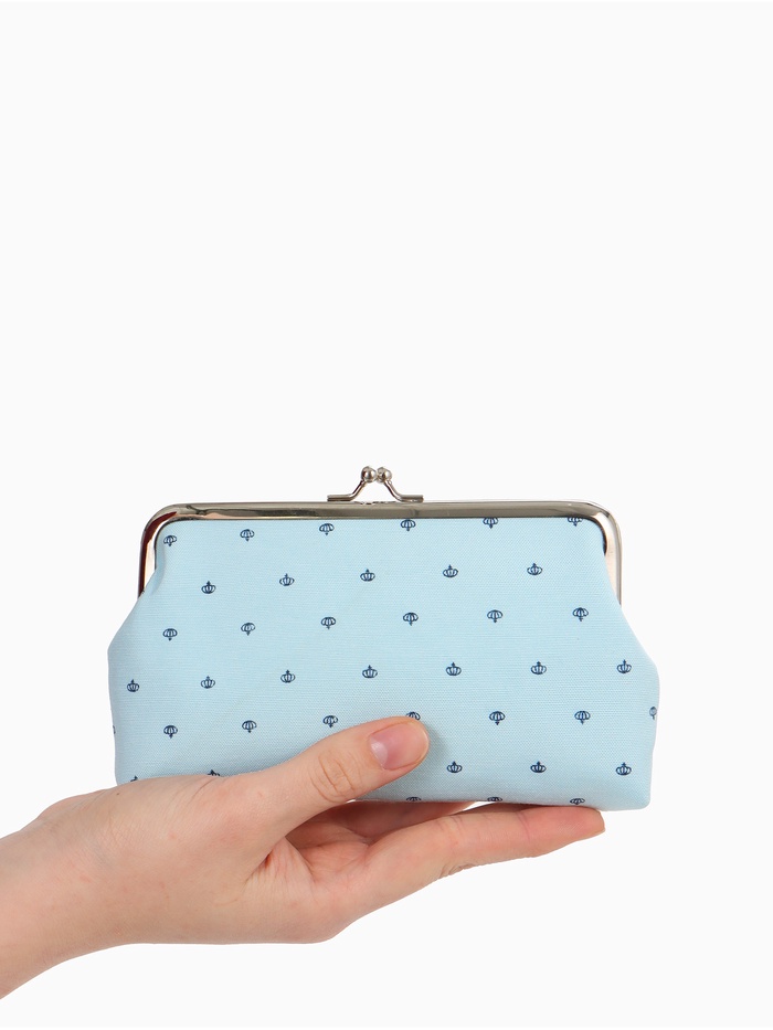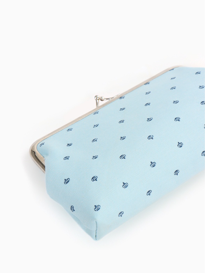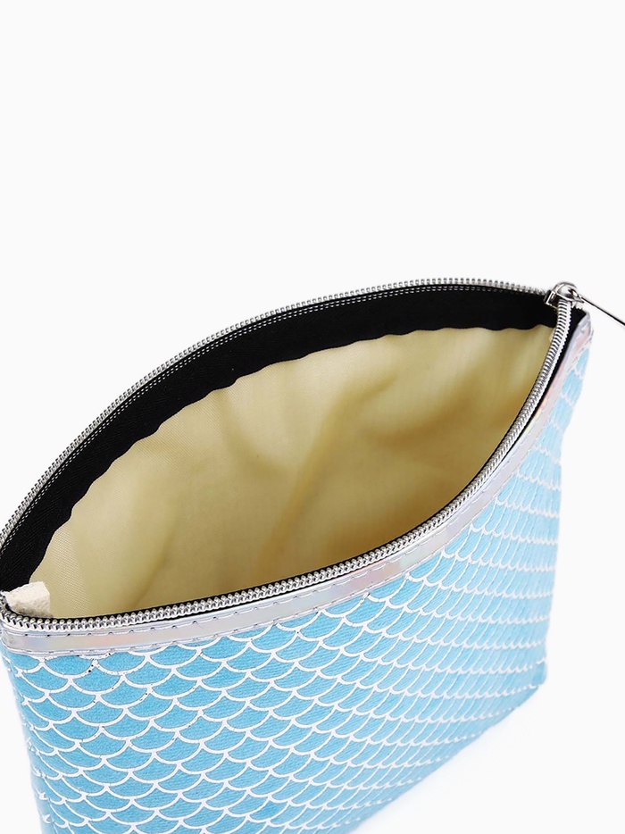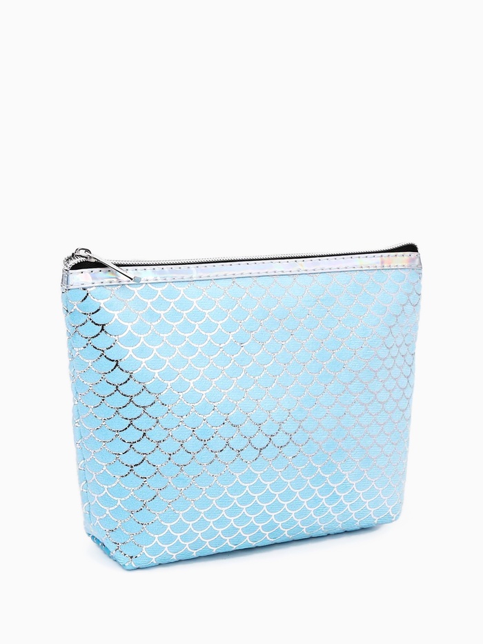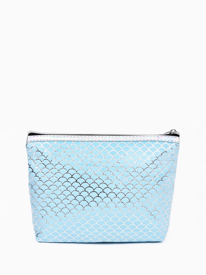 Косметичка женская на молнии объёмная, маленькая, с принтом, голубая 3 фото
