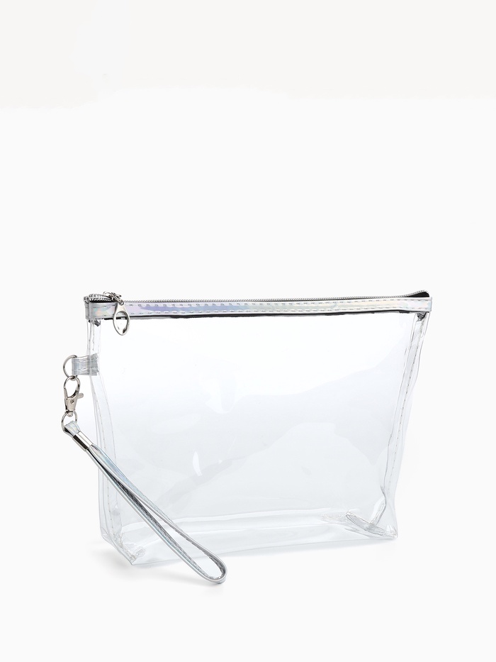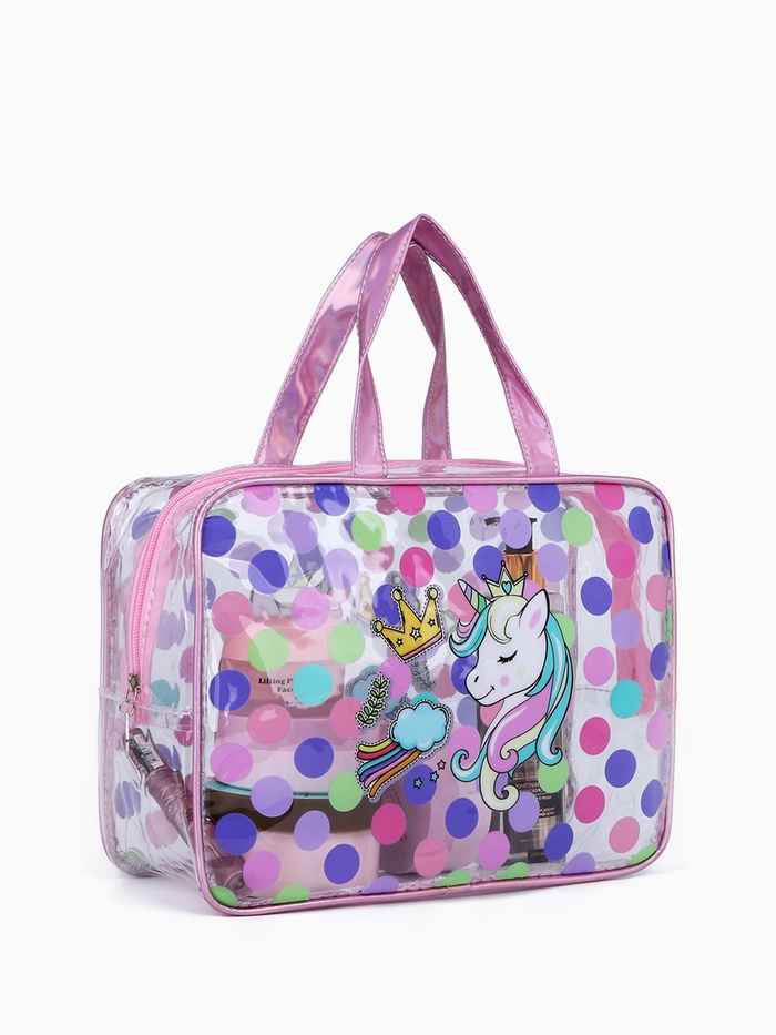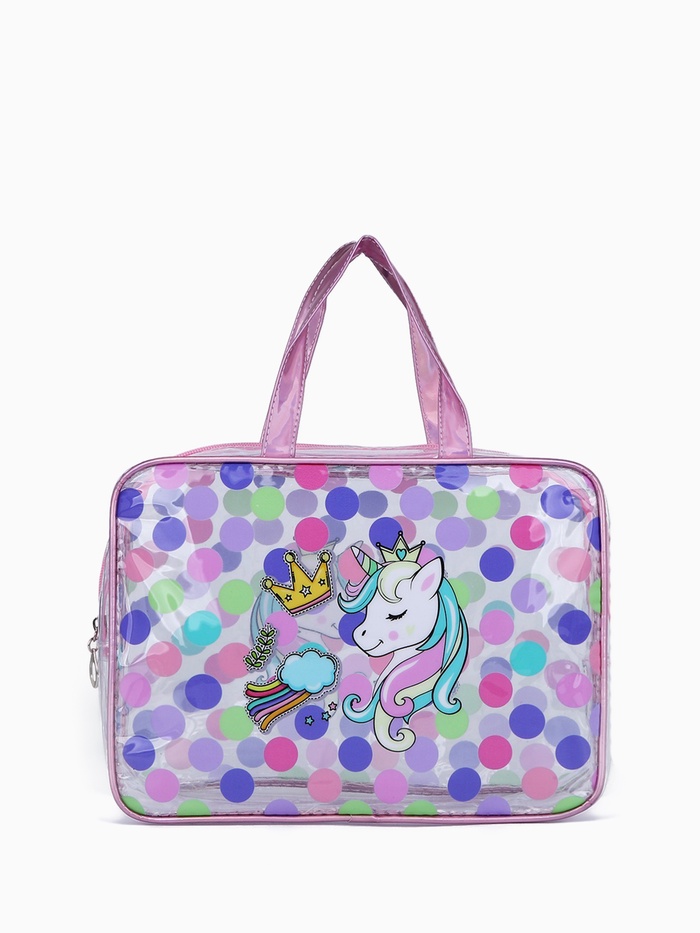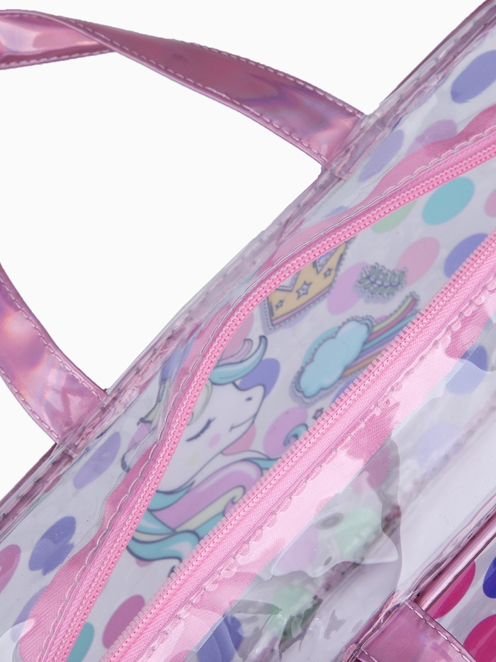 Косметичка-сумка на молнии, большая, с ручками, прозрачная/розовая 5 фото