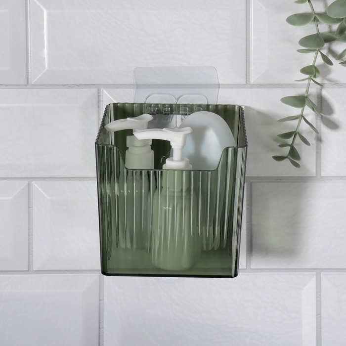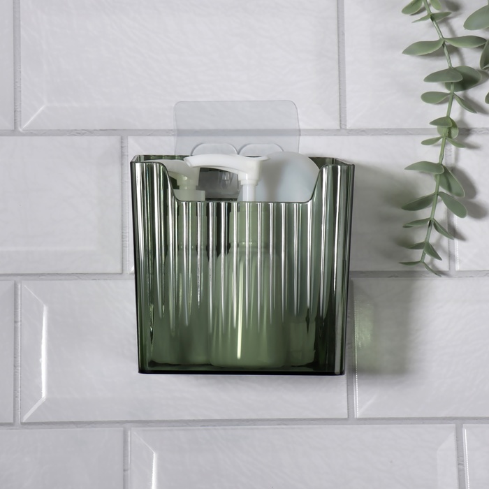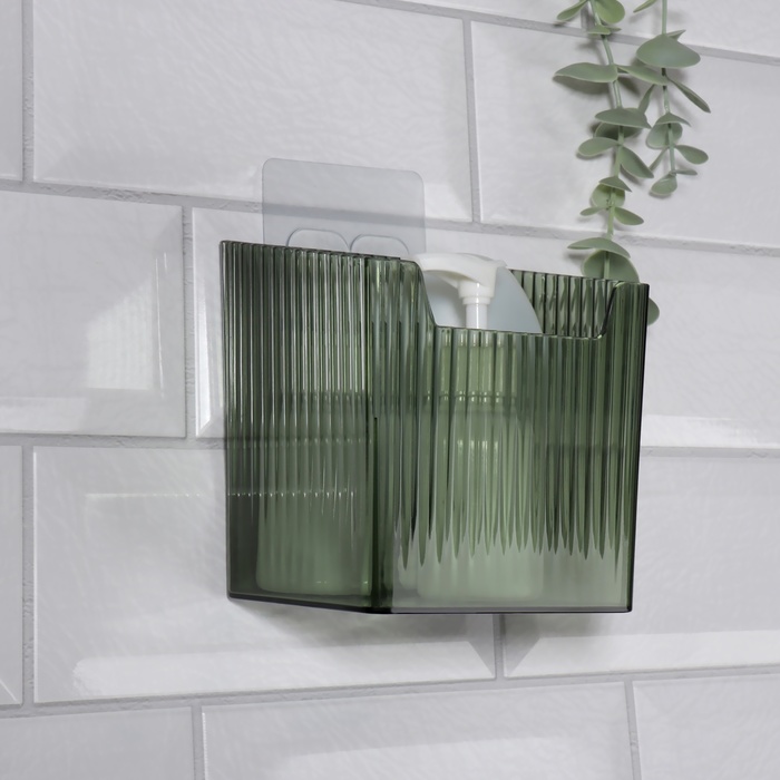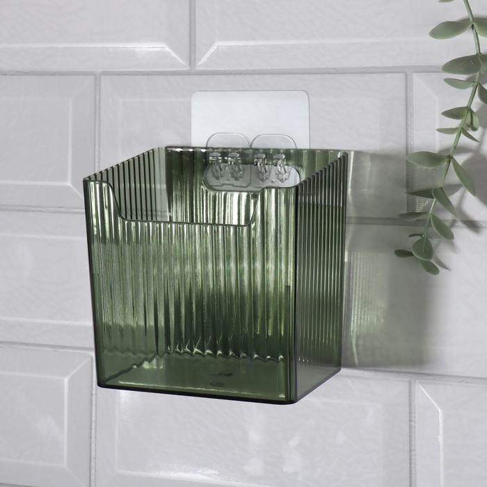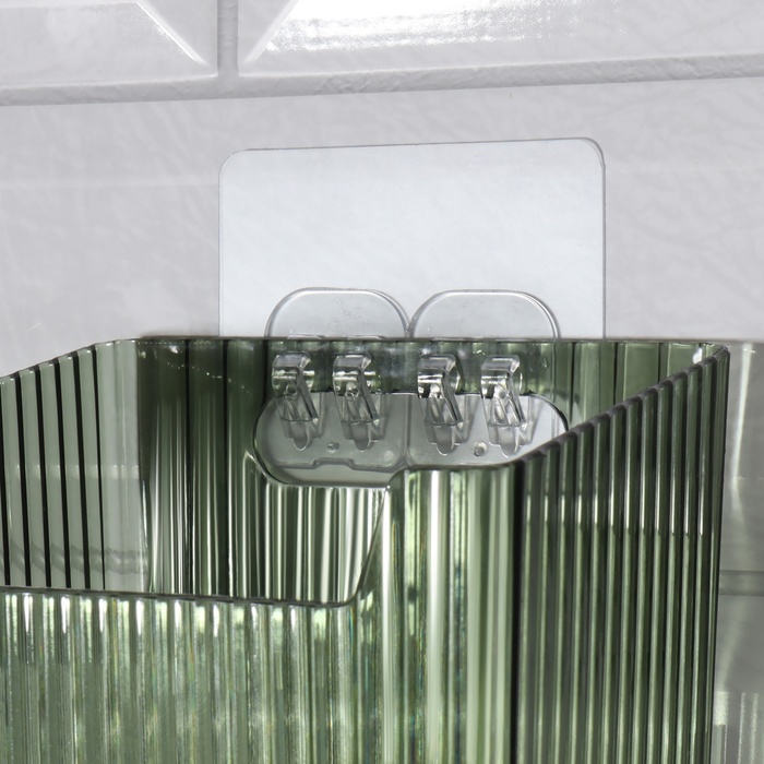 Органайзер для хранения «GREEN», навесной, 1 секция, с клеевой основой, 11.5×8×11 см, полупрозрачный, зелёный 10 фото