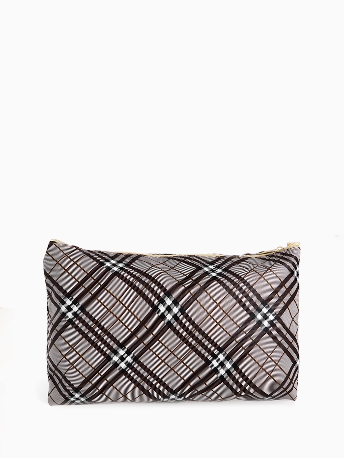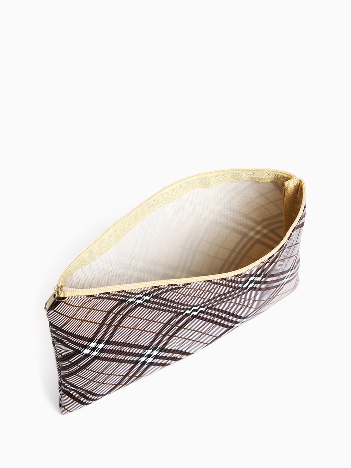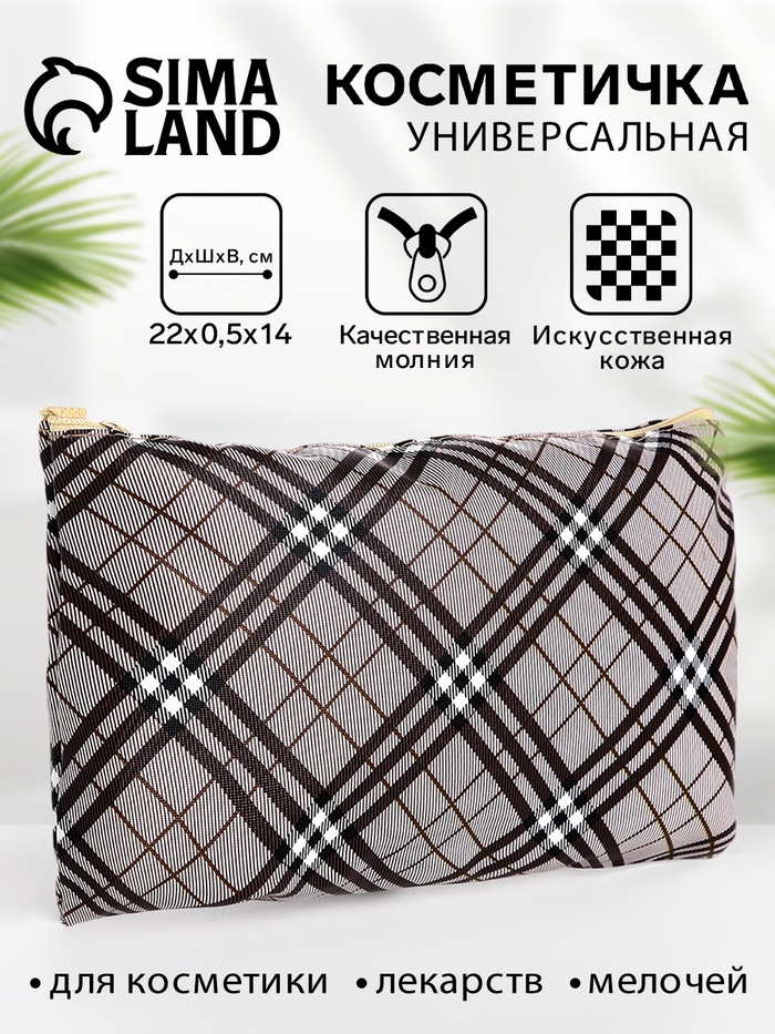 Косметичка-пенал на молнии, плоская, с рисунком «Ромбы», бежевая 3 фото