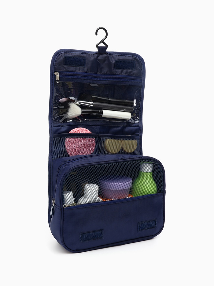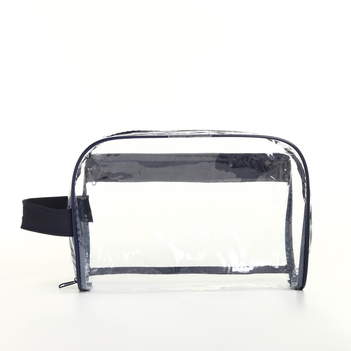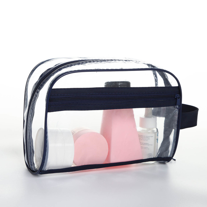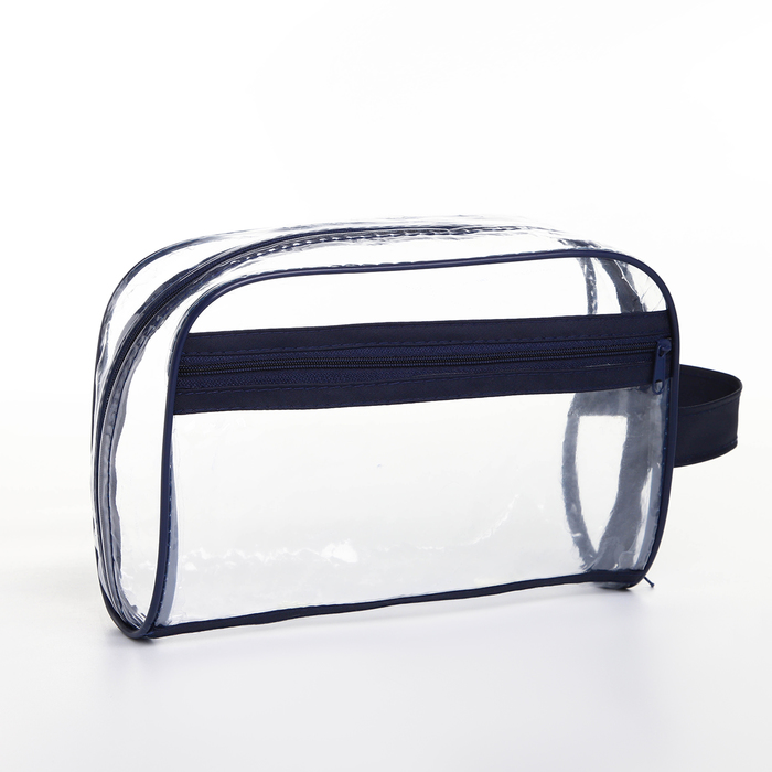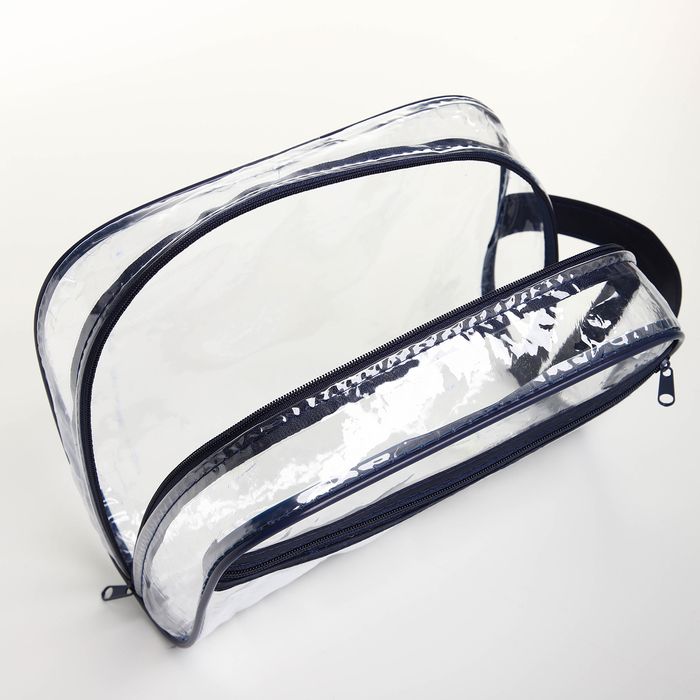 Косметичка на молнии, с ручкой, цвет синий/прозрачный 5 фото