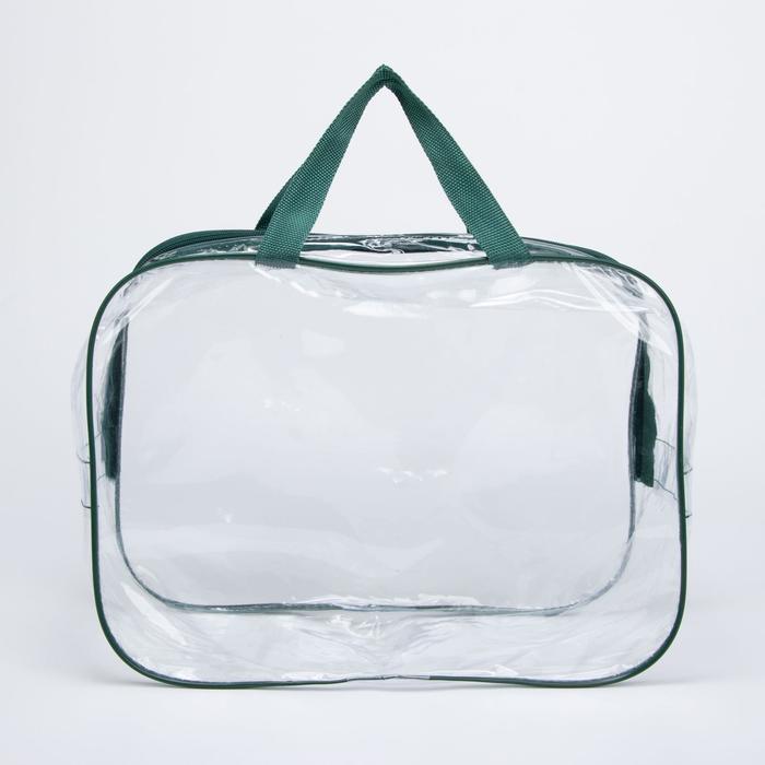 Косметичка на молнии, цвет прозрачный/зелёный 4 фото
