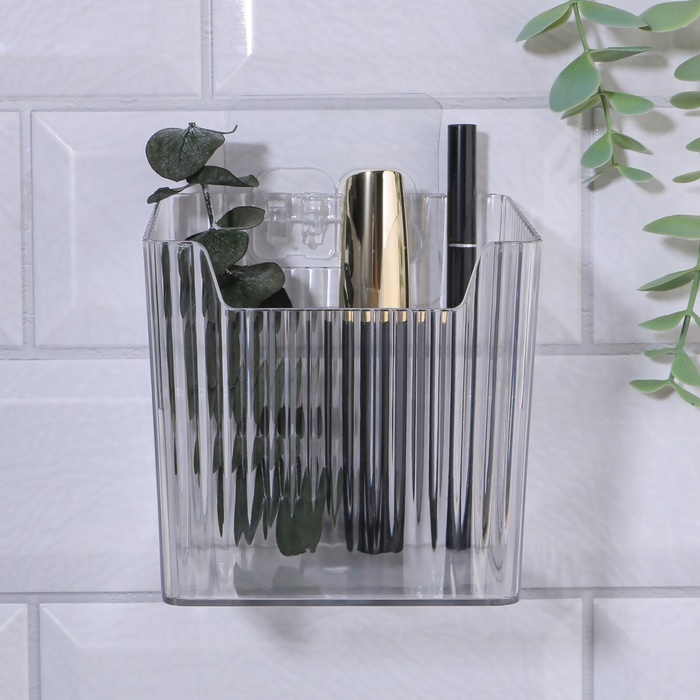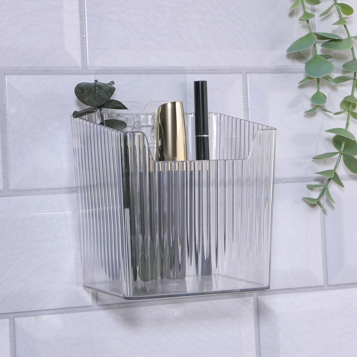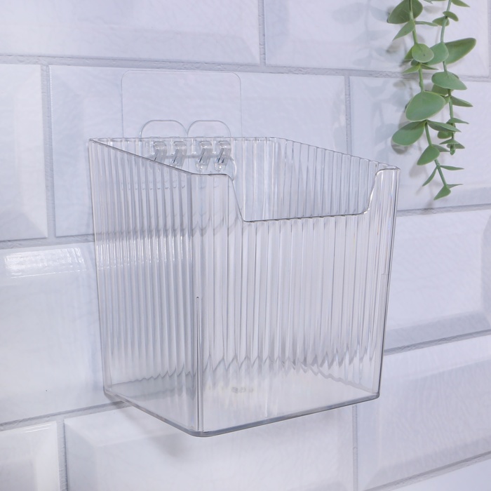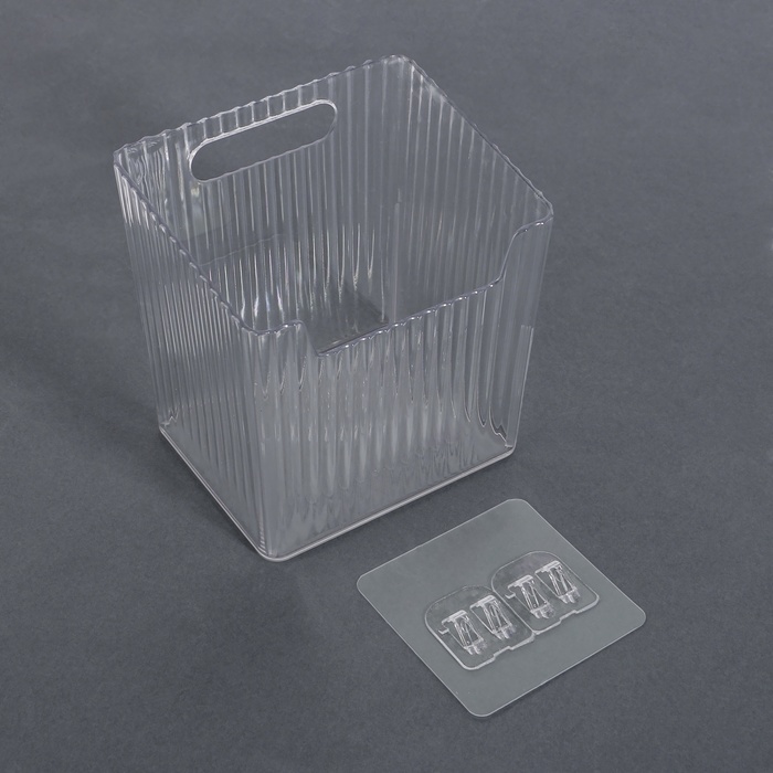 Органайзер для хранения «CRISTAL», навесной, 1 секция, с клеевыми крючками, 11.5×8×11 см, прозрачный 7 фото