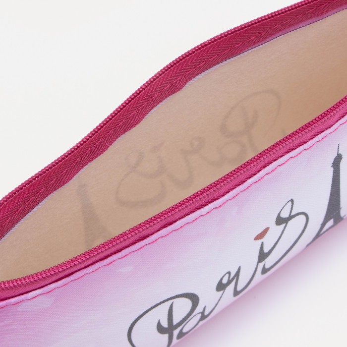 Косметичка-пенал на молнии, с ярким рисунком, нежно-розовая 3 фото