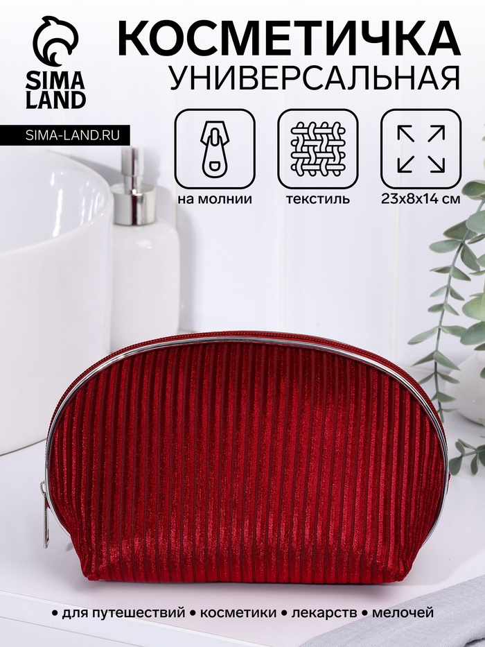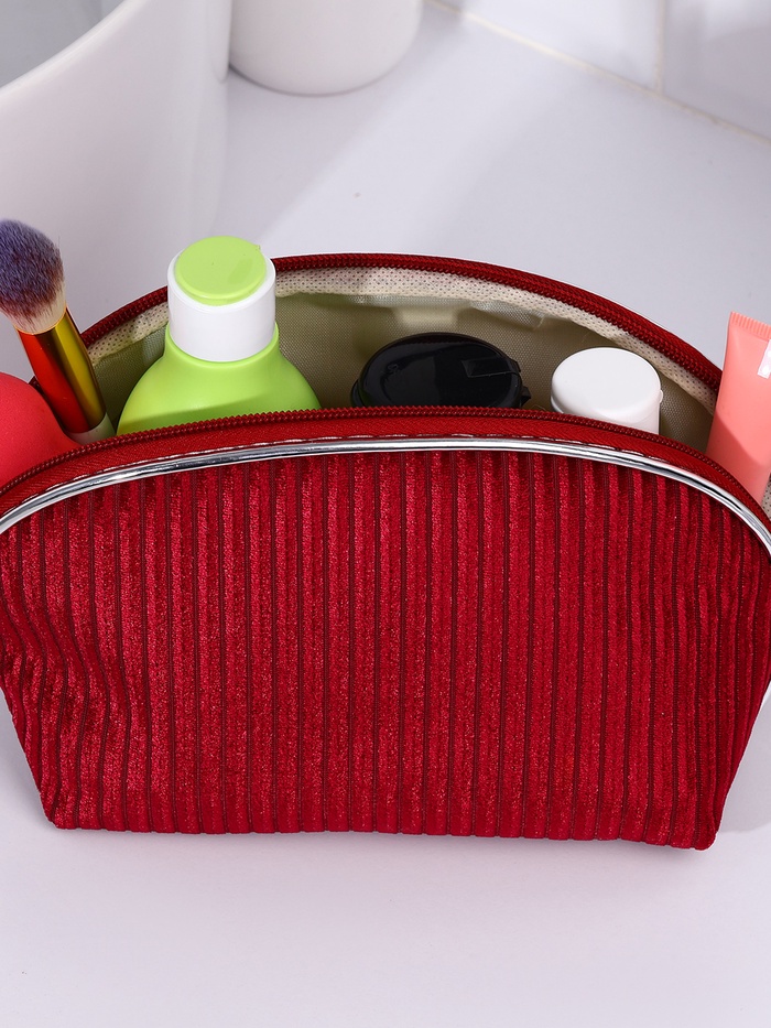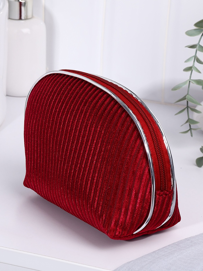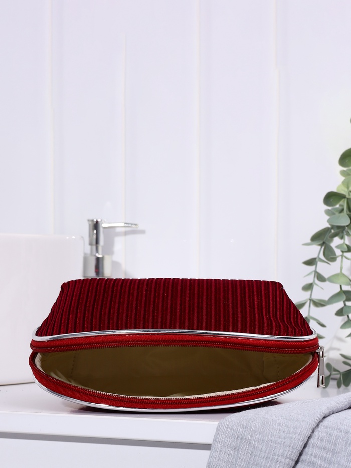 Косметичка на молнии женская, с подкладкой, вельветовая, бордовая 4 фото