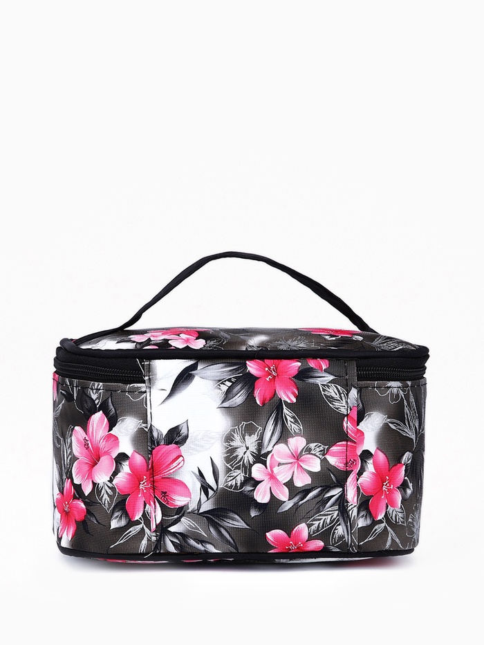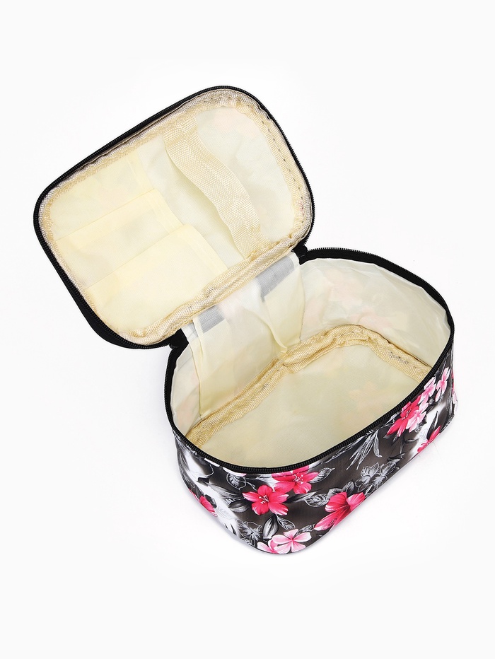 Набор объёмных косметичек на молниях 2 в 1, с ручкой, с принтом, чёрный 4 фото