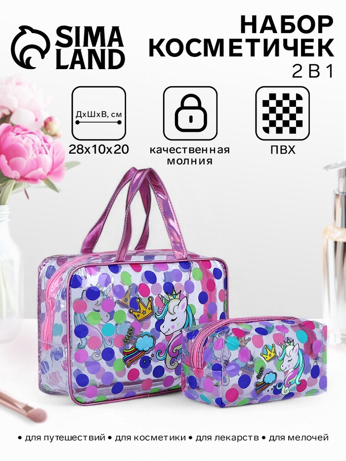 Косметичка на молнии, цвет фиолетовый/разноцветный 3 фото