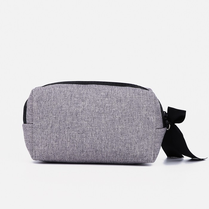 Косметичка на молнии с ручкой, объёмная, текстура, серая 3 фото