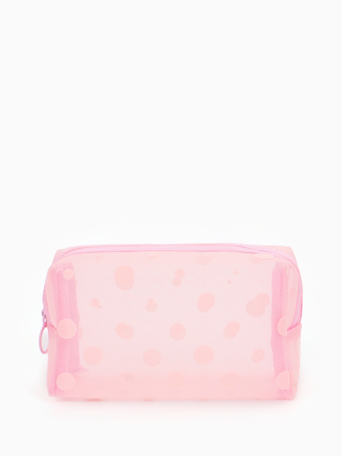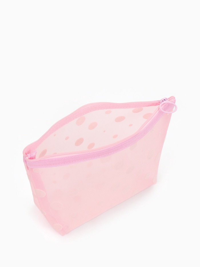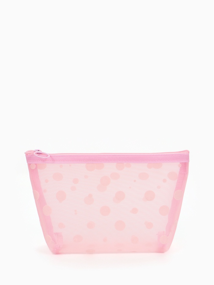 Косметичка женская DOT, с рисунком, сетка, на молнии, розовая