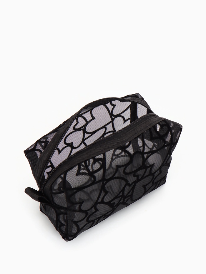 Косметичка женская HEARTS, с рисунком, сетка, на молнии, чёрная