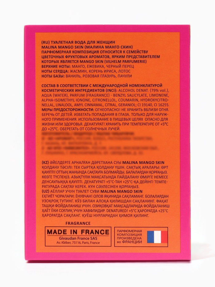 Туалетная вода женская Malina Mango Skin, 100 мл 6 фото