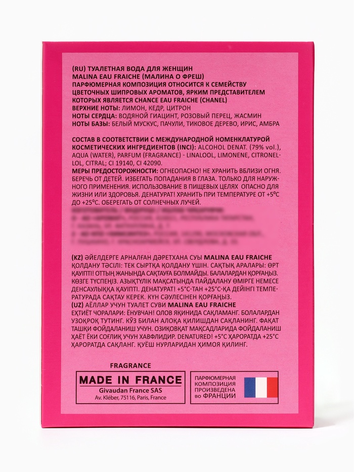 Туалетная вода женская Malina Eau Fraiсhe, 100 мл 6 фото