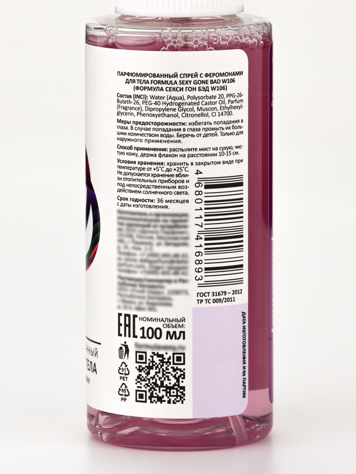 Мист парфюмированный спрей с феромонами для тела Formula Sexy Gone Bad W106, 100 мл (по мотивам Good Girl Gone Bad (By Kilian) 4 фото