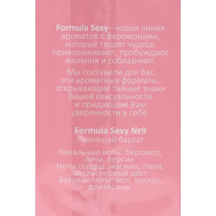 Туалетная вода женская с феромонами Formula Sexy collection Pink U110, 30 мл