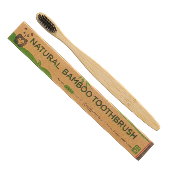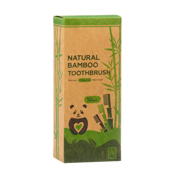 Зубная щетка бамбуковая средняя 10 штук, микс цветов 10 фото