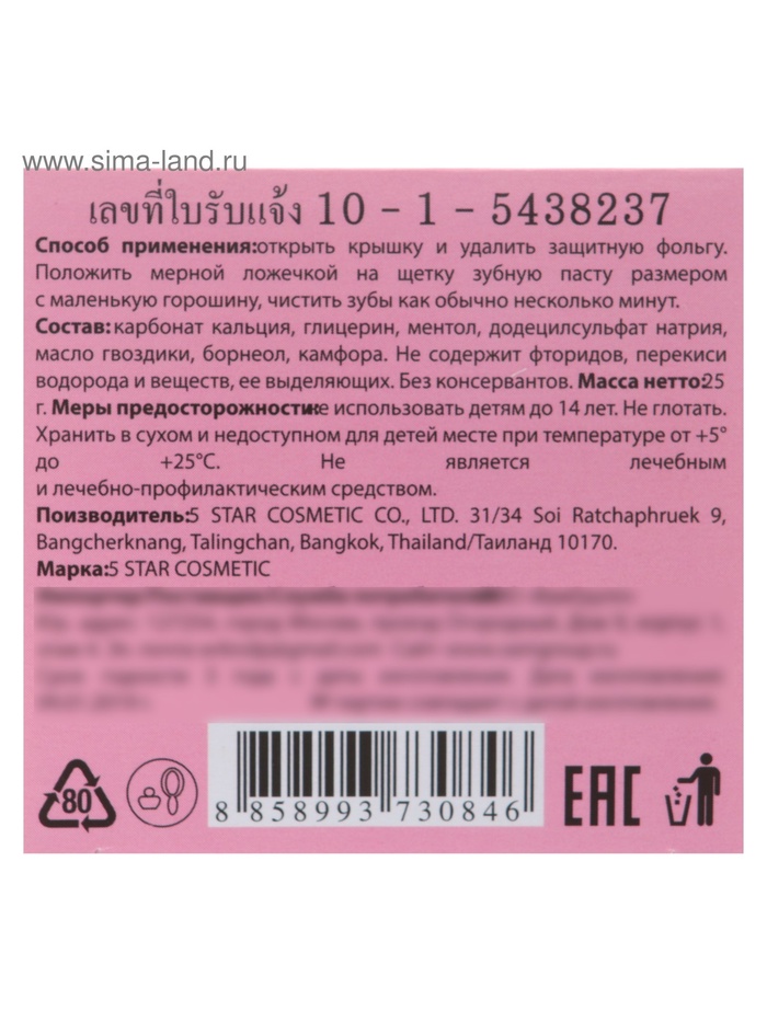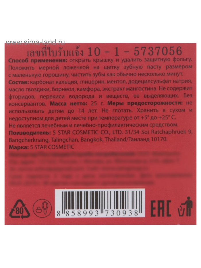 Зубная паста 5 Star Cosmetic с травами и экстрактом мангостина, 25 г 6 фото
