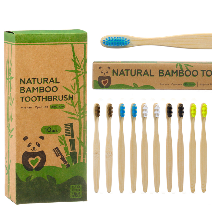 Зубная щетка бамбуковая жесткая, 10 штук, микс цветов 10 фото