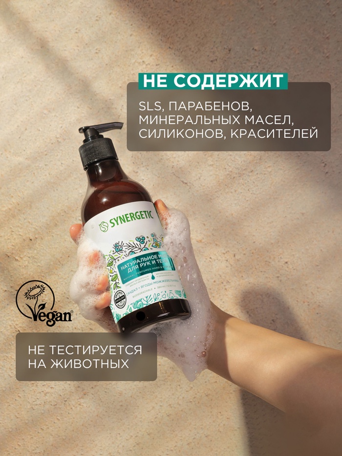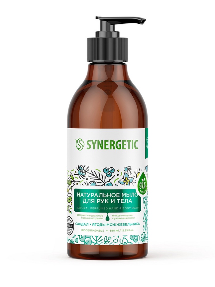 Жидкое мыло Synergetic «Сандал и ягоды можжевельника», для рук и тела, 380 мл 10 фото