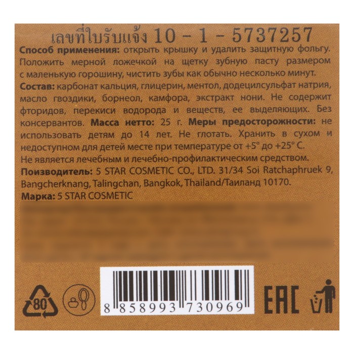 Зубная паста 5 Star Cosmetic с травами и экстрактом нони, 25 г 4 фото