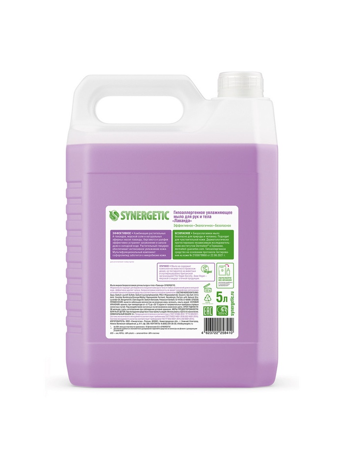 Жидкое мыло Synergetic «Лаванда», гипоаллергенное, 5 л