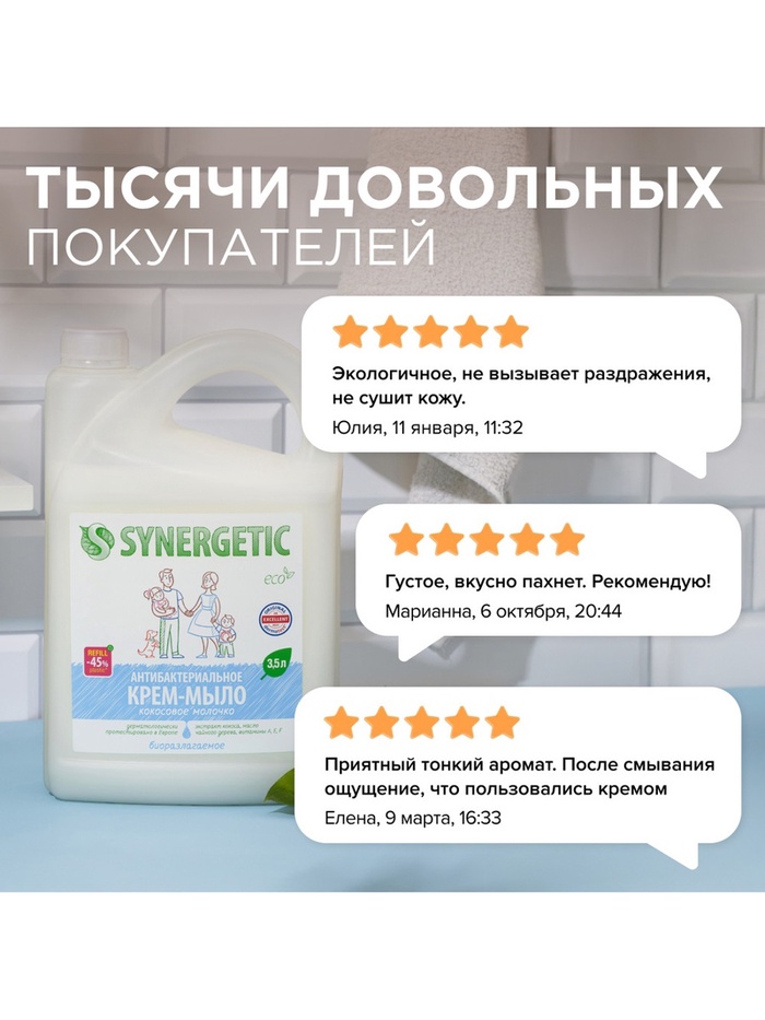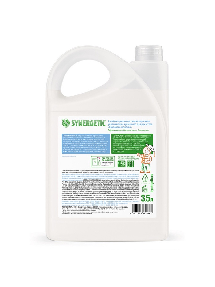 Крем-мыло Synergetic «Кокосовое молочко», антибактериальное, 3.5 л 10 фото