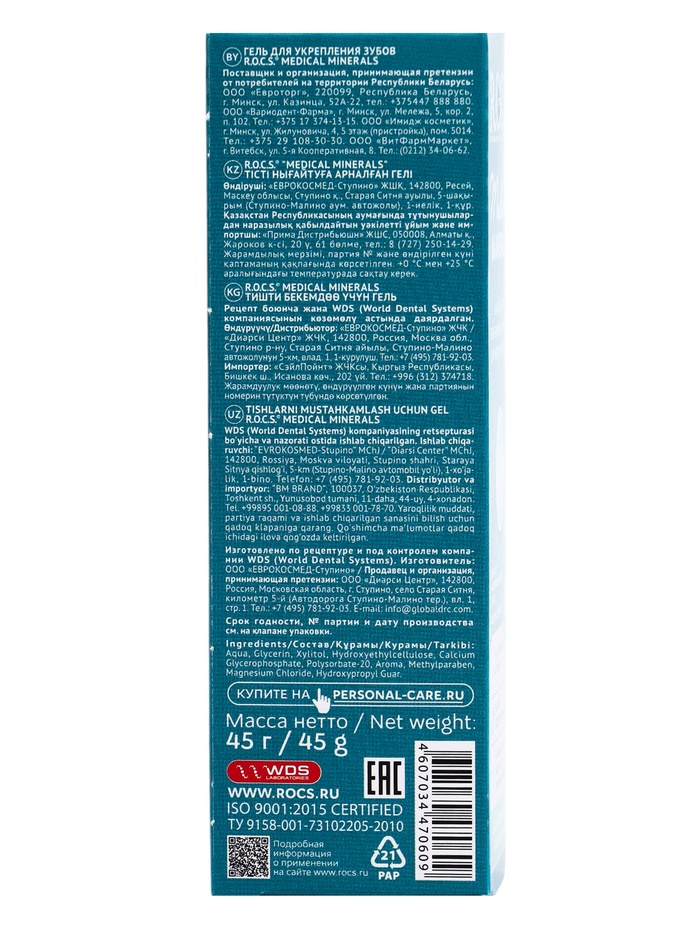 Гель для укрепления зубов R.O.C.S. Medical Minerals реминерализующий, 45 г 8 фото