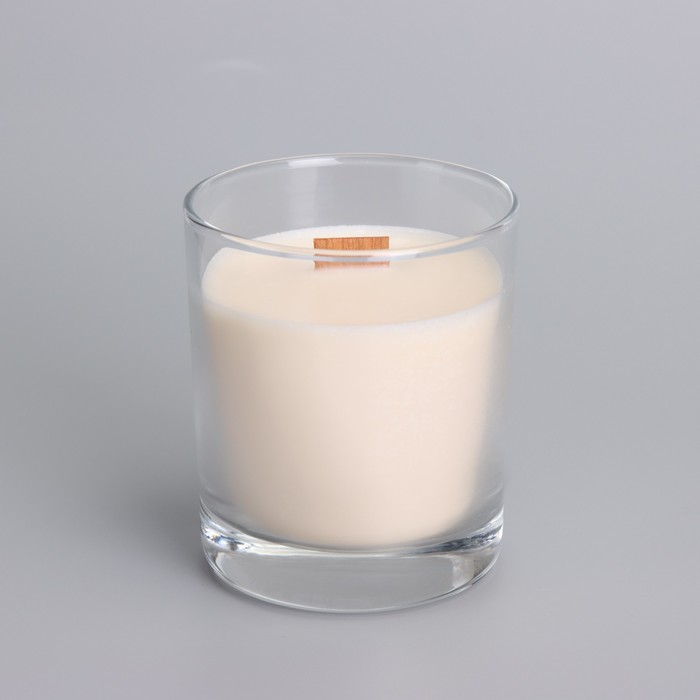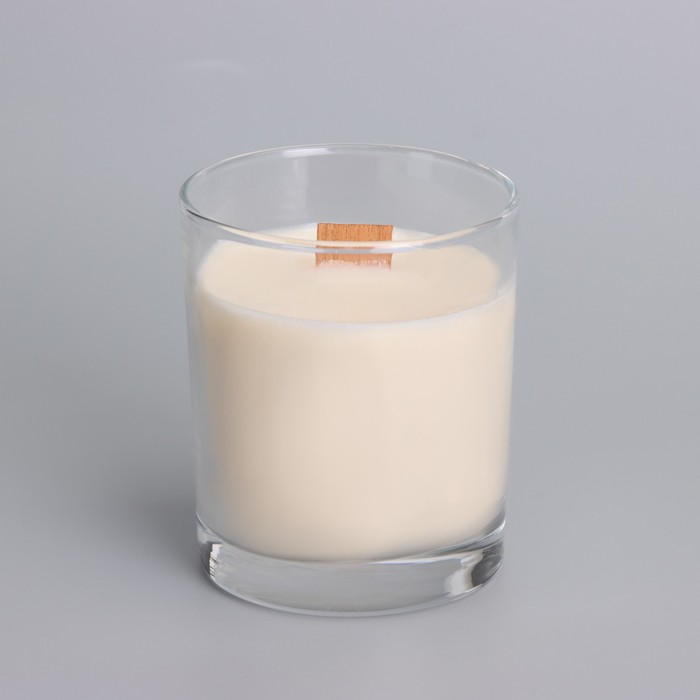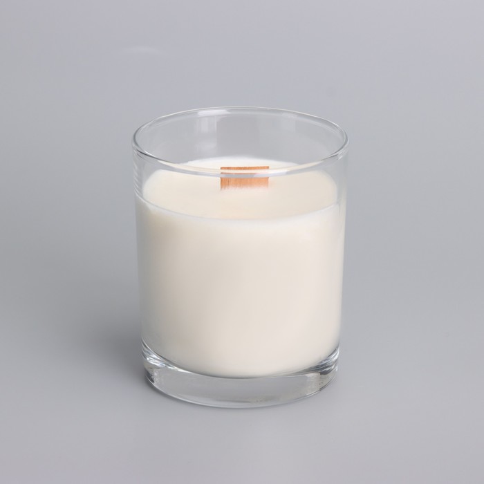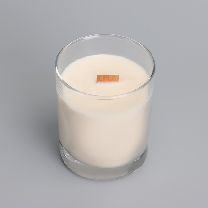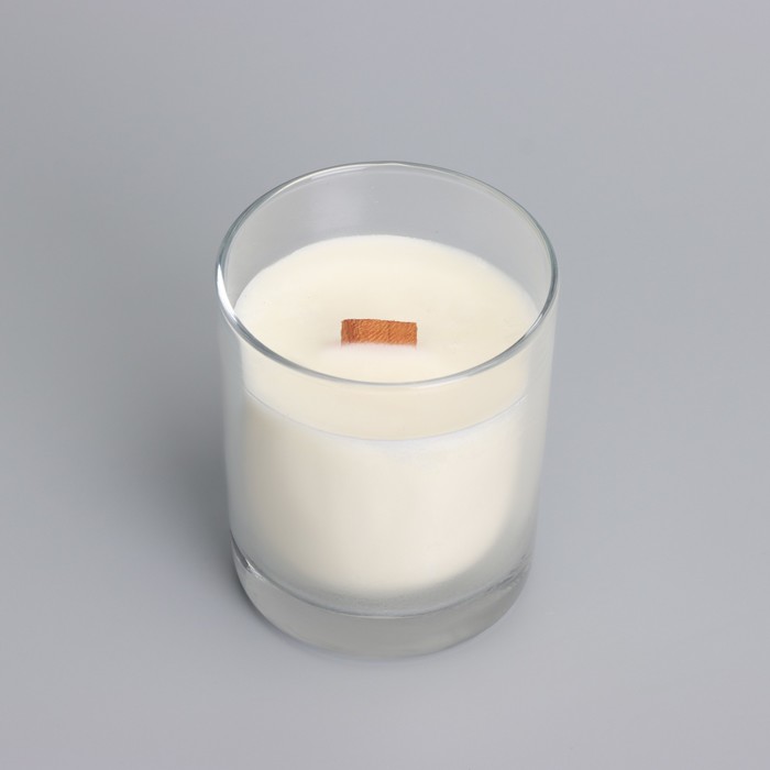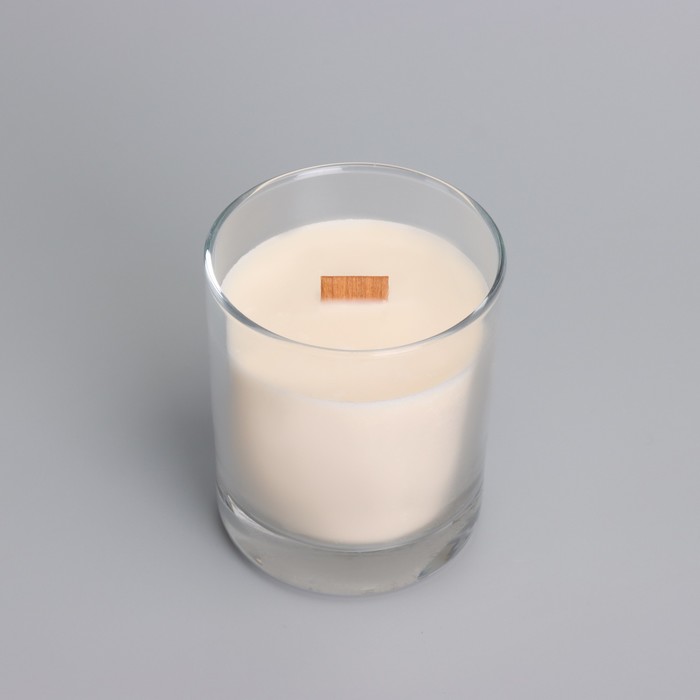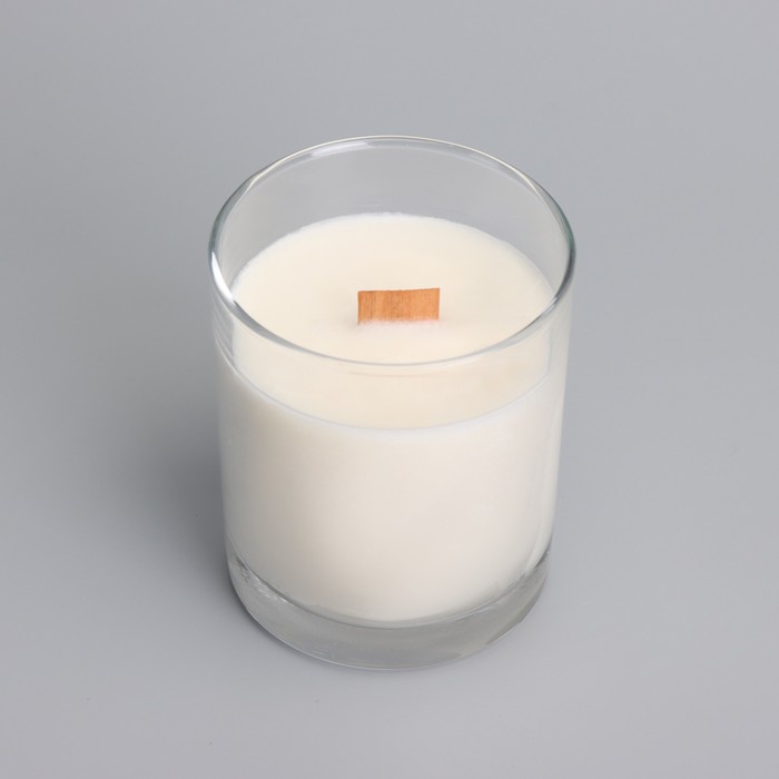 Свеча из соевого воска в стакане с деревянным фитилем и крышкой «Весенний ландыш», 110 г 5 фото