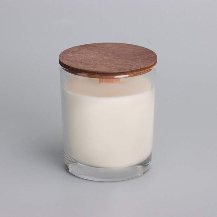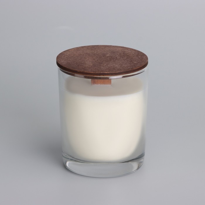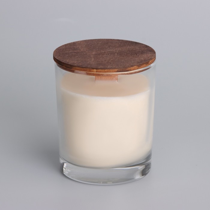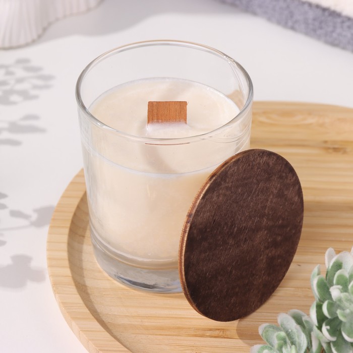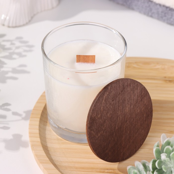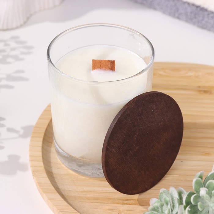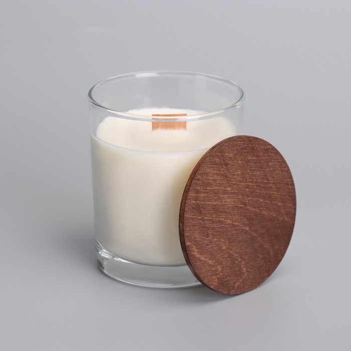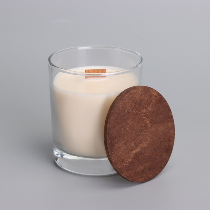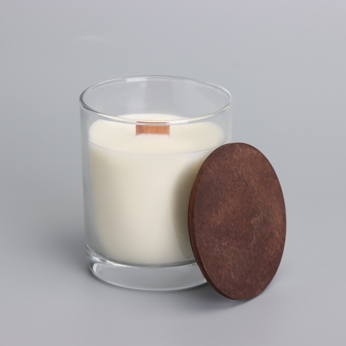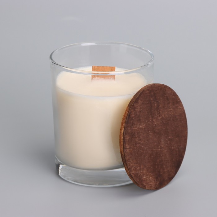Ароматическая свеча в стакане с деревянным фитилем и крышкой «Кокосовый рай», из соевого воска, 110 г 5 фото