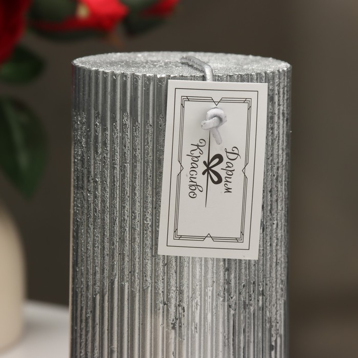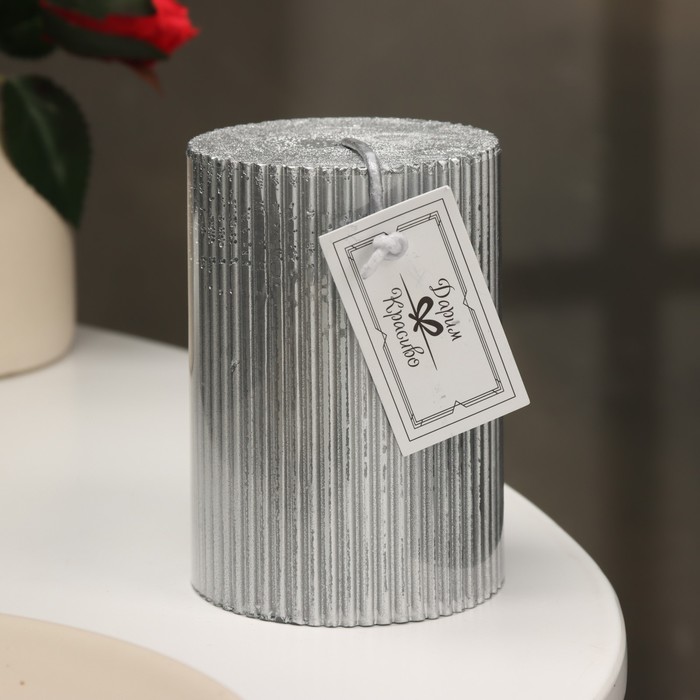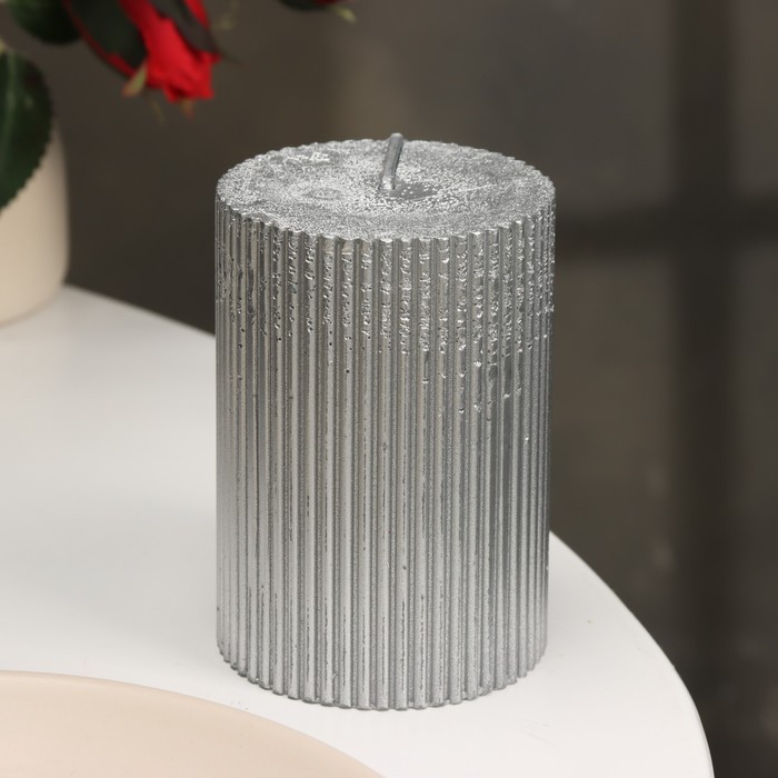 Свеча - цилиндр «Рельеф», 7×10 см, серебристый 4 фото