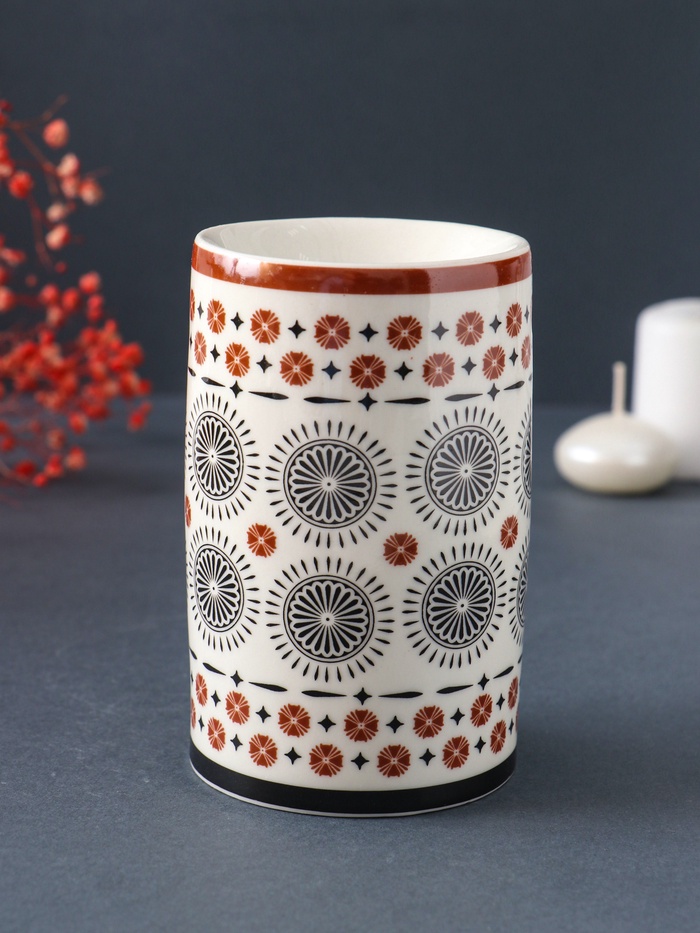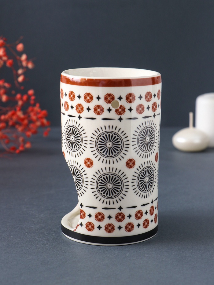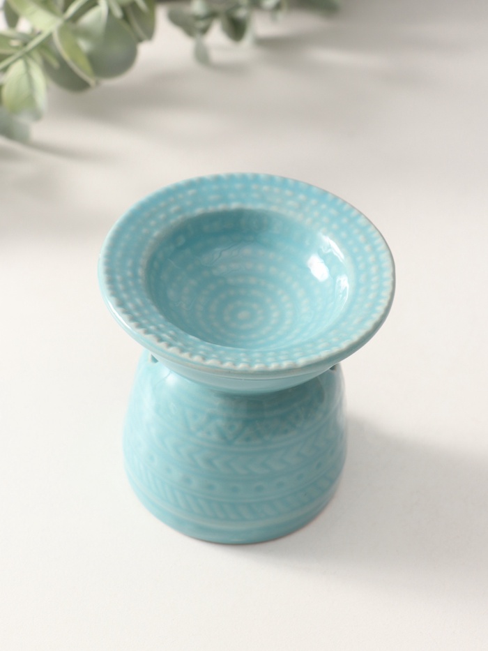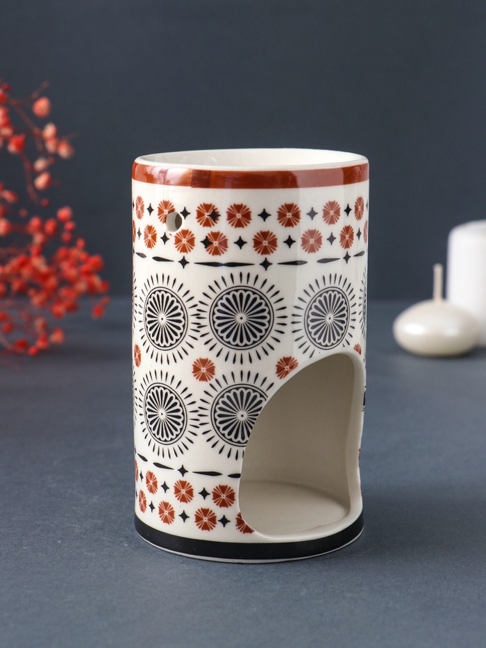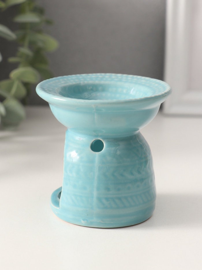 УЦЕНКА Аромалампа для эфирных масел керамика «Цветочки в ромбах», серая, 6.3×6.3×7.5 см 9 фото