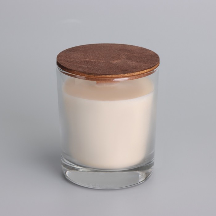 Ароматическая свеча в стакане и крышкой «Нежный кашемир», из соевого воска с деревянным фитилём, 110 г 5 фото