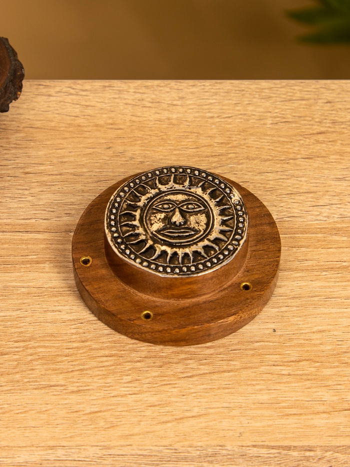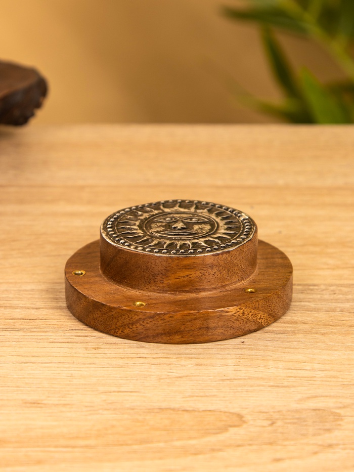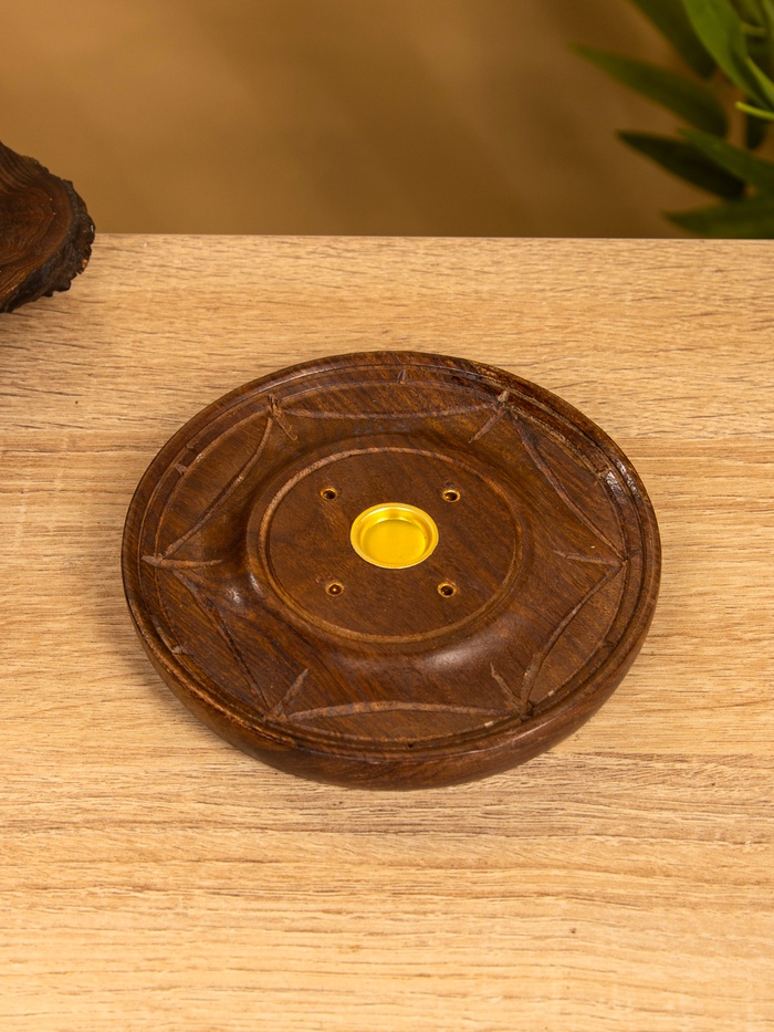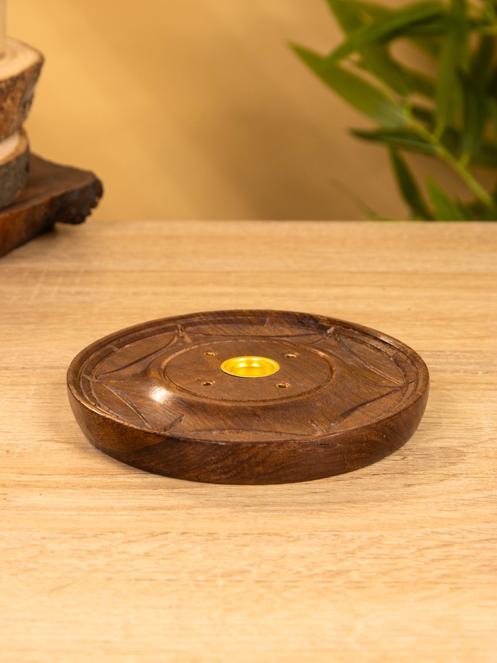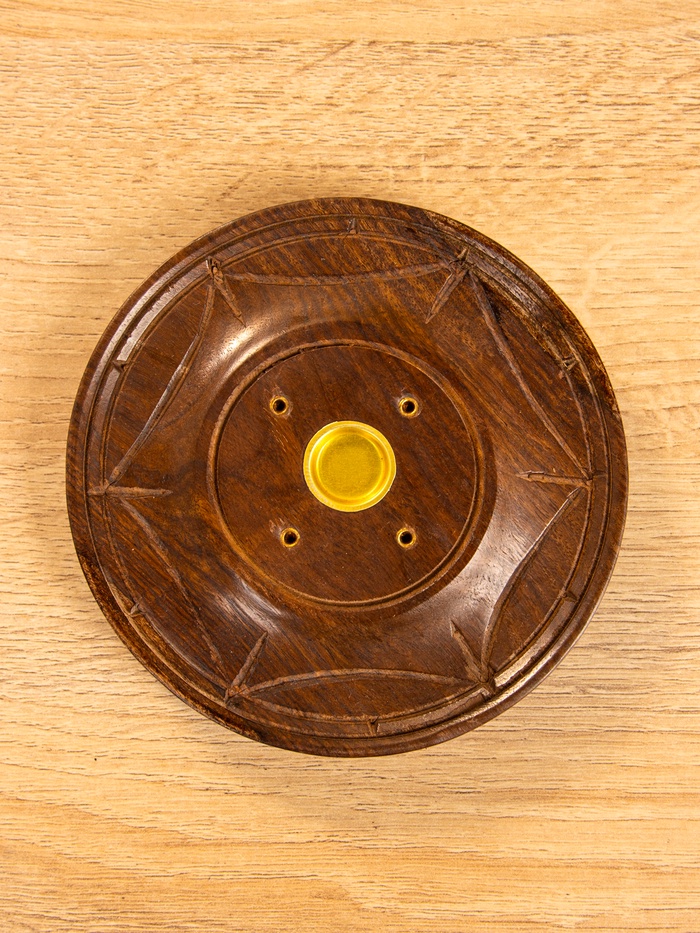 Подставка под благовония круглая, 12.5×12.5×1.5 см, дерево шишам 4 фото