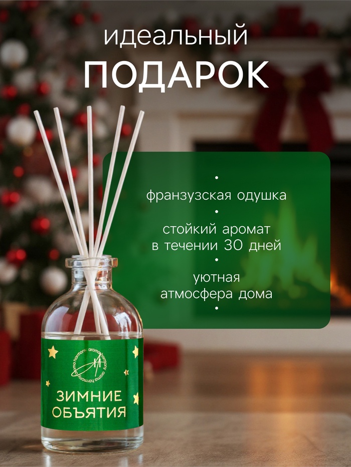 Новогодний ароматический диффузор «Зимние объятия», с открыткой и палочками, для дома, 50 мл 10 фото