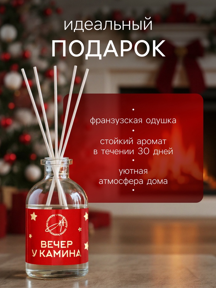 Новогодний ароматический диффузор «Вечер у камина», с открыткой и палочками, для дома, 50 мл 10 фото