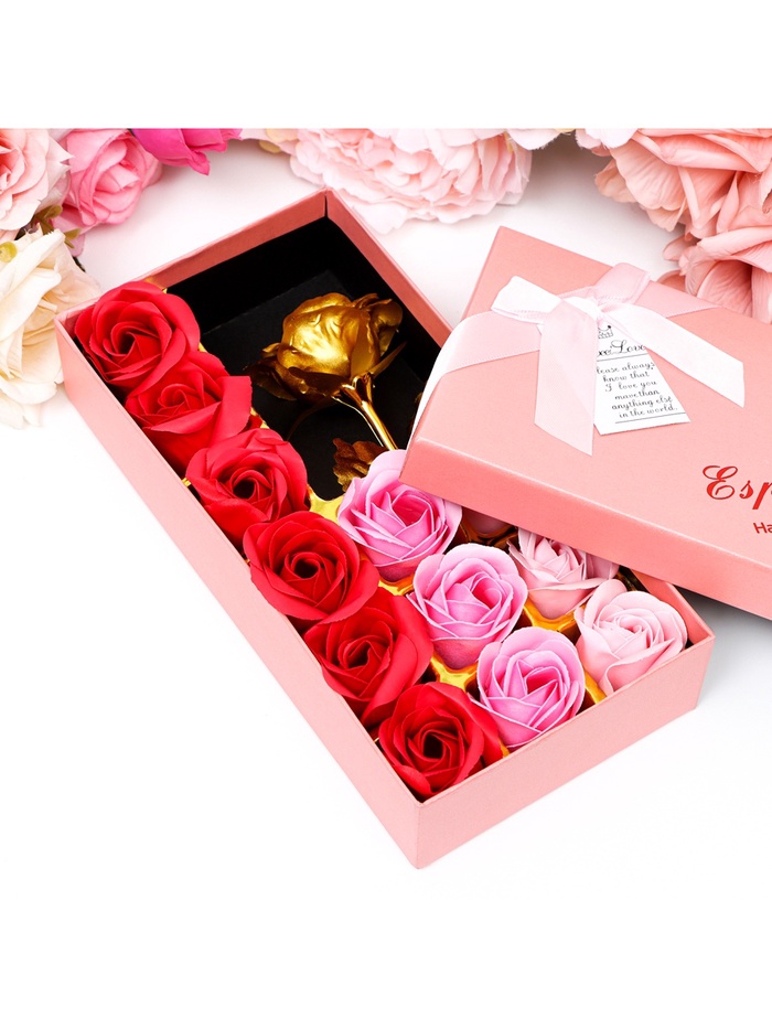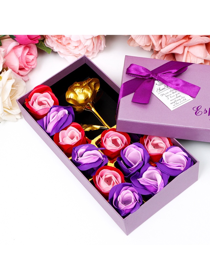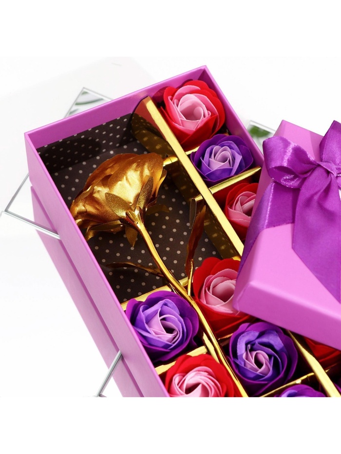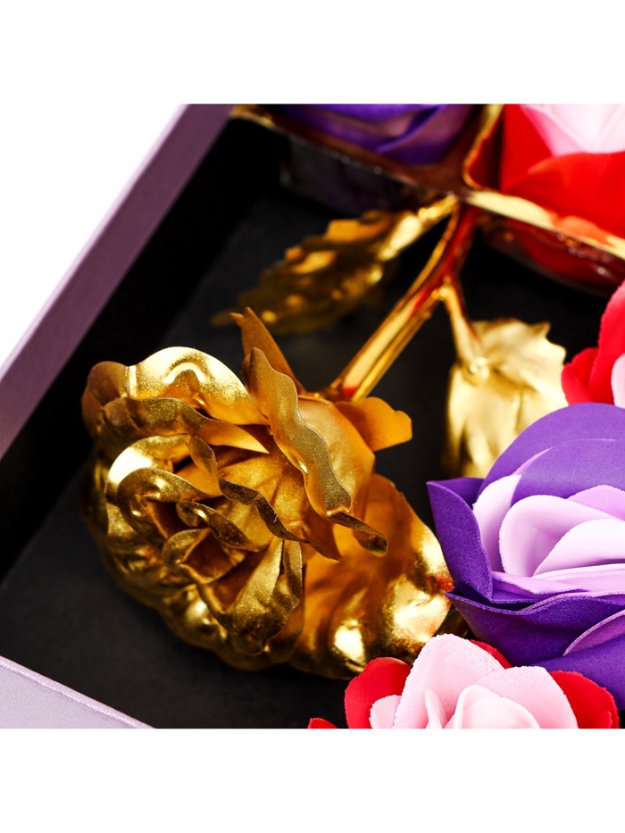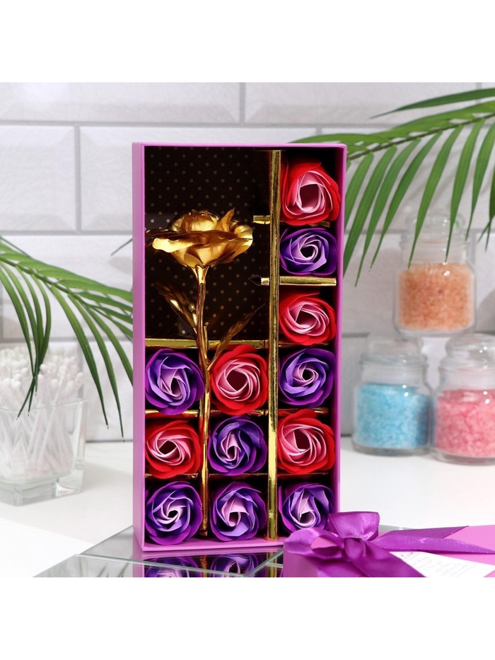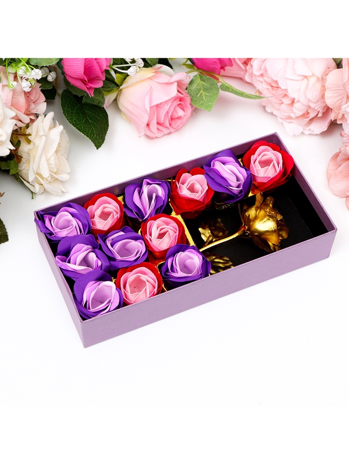 Мыльные розочки цветных оттенков и золотая роза, набор 10 фото