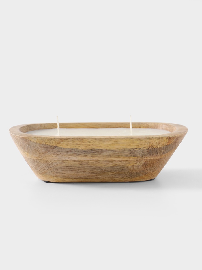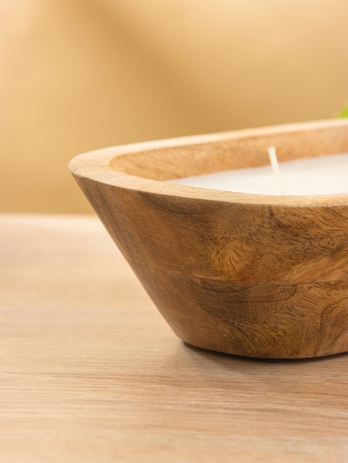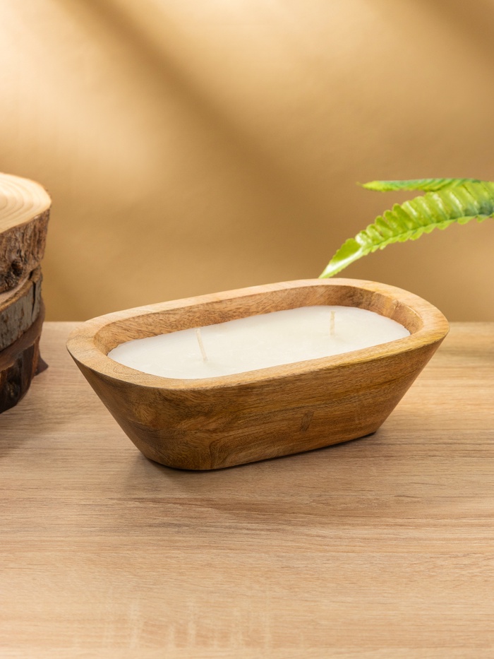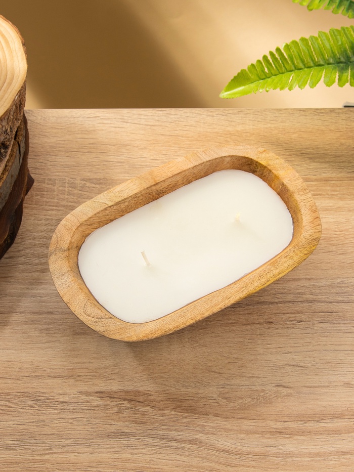 Свеча в деревянной чаше, парафин и соевый воск, 20×13×5.5 см 5 фото