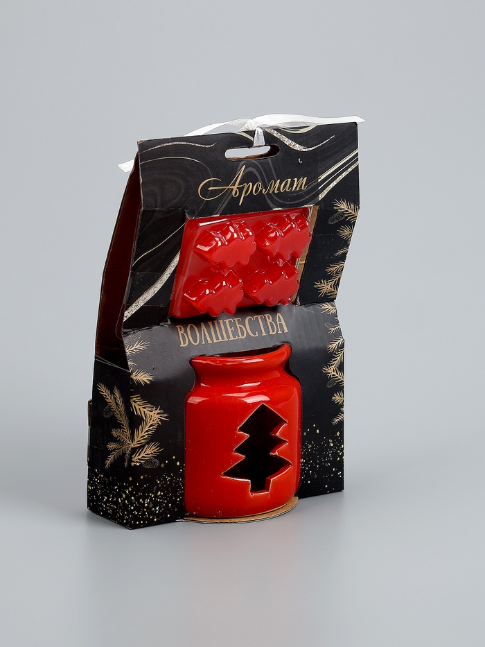 УЦЕНКА Набор: Аромалампа для эфирных масел, мелтсы из воска ароматические «Ёлочка», красная, 7.5×7.5×8 см 2 фото