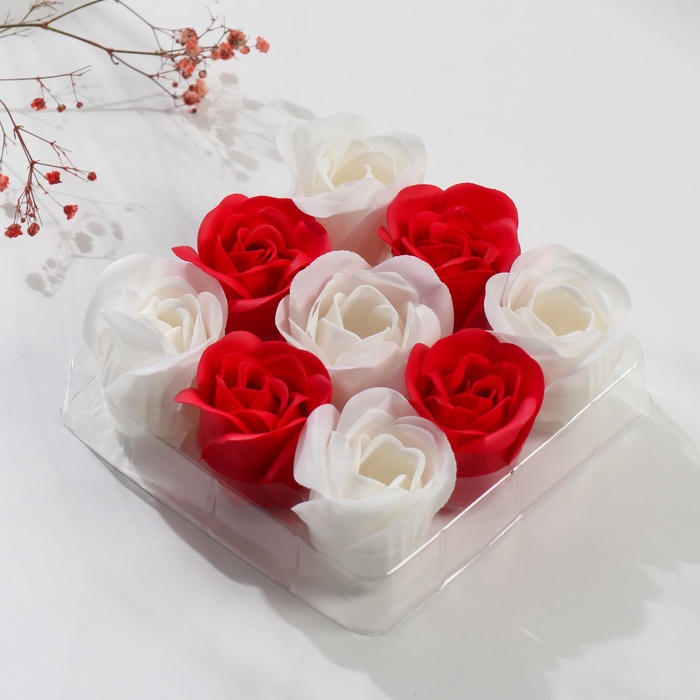 УЦЕНКА Мыльные лепестки для ванны «Красные и белые розы», подарочный набор 9 шт., 4.5×12.6×12.6 см 4 фото