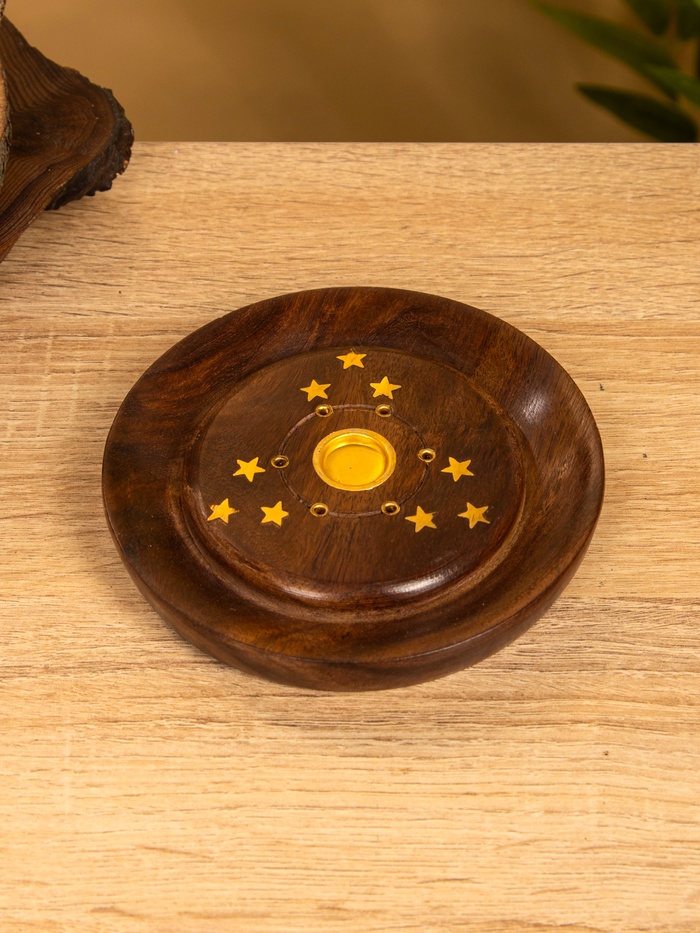 Подставка под благовония круглая «Звёзды», 12.5×12.5×2 см, дерево шишам 4 фото
