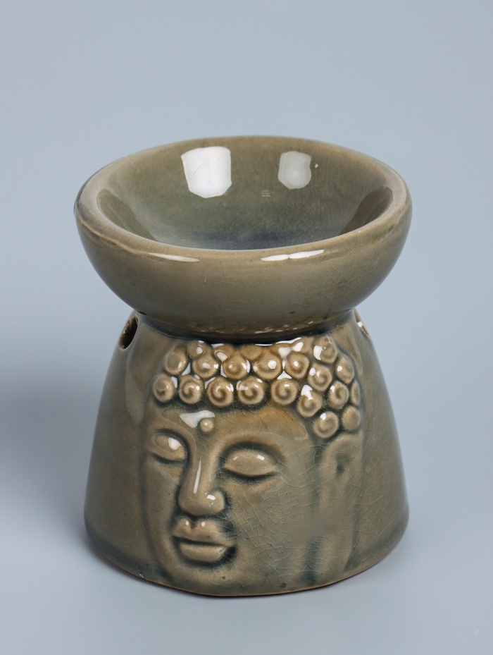 УЦЕНКА Аромалампа для эфирных масел керамика «Лик Будды», серая, 8×8×9 см 4 фото