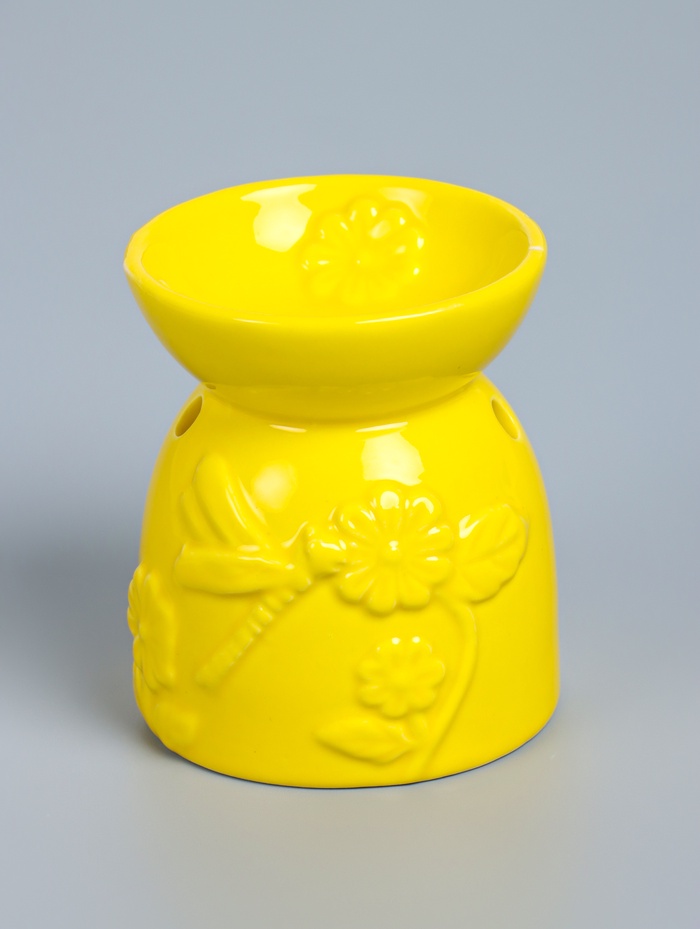 УЦЕНКА Аромалампа для эфирных масел керамика «Стрекоза на цветке», жёлтая, 7.2×7.2×8.3 см 5 фото