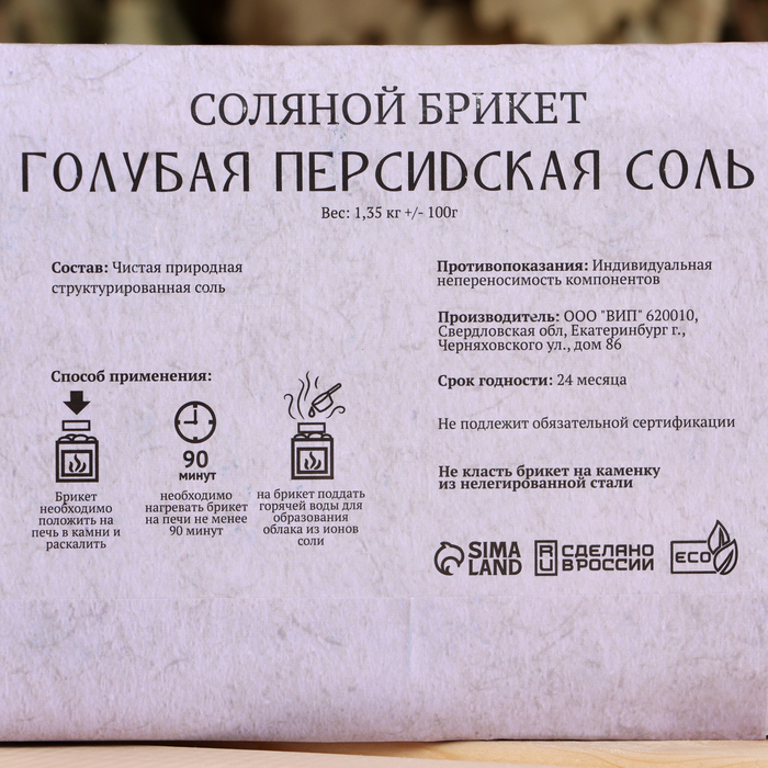 Соляной брикет «Голубая персидская соль» 1.35 кг «Добропаровъ» 4 фото