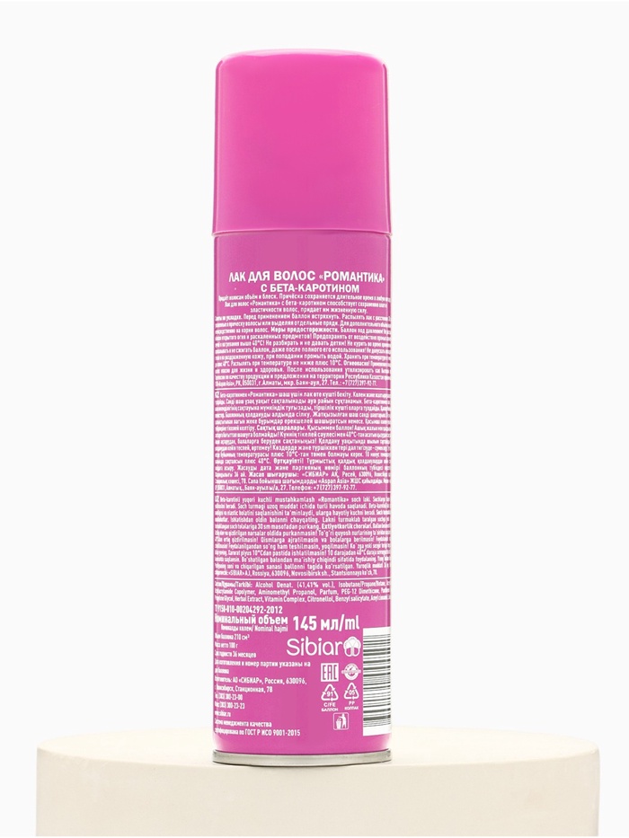 Лак для волос «Романтика», очень сильная фиксация, с В-каротином, 145 мл 5 фото