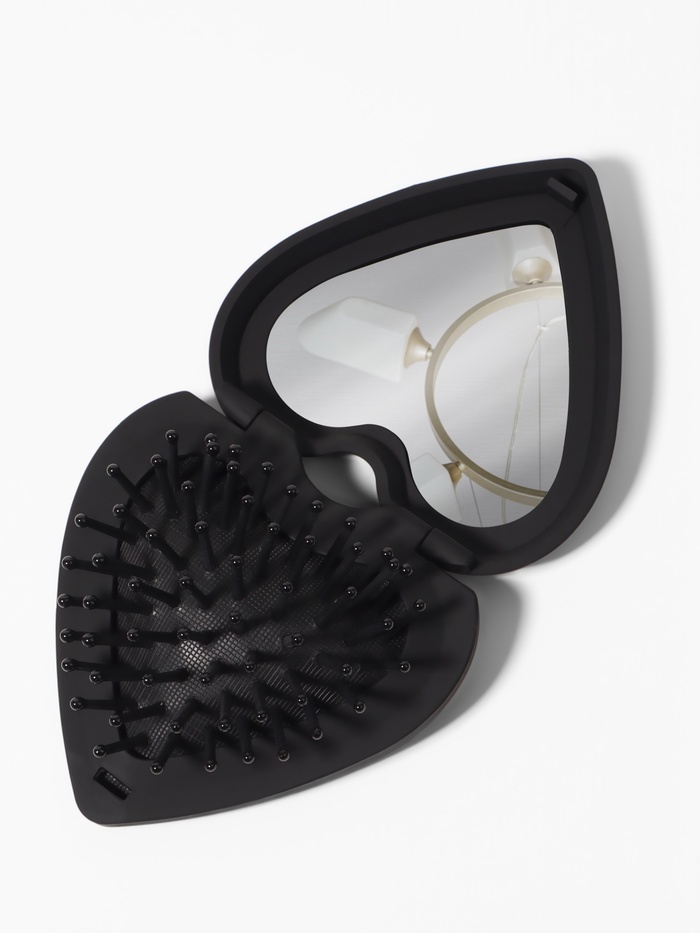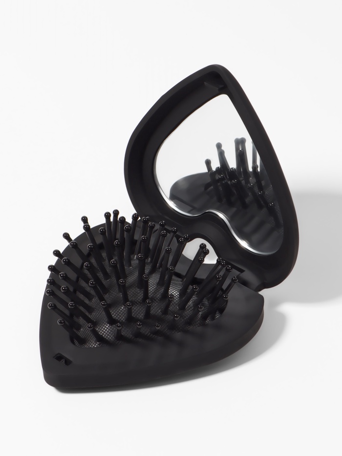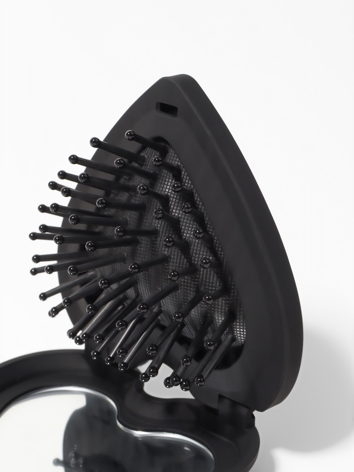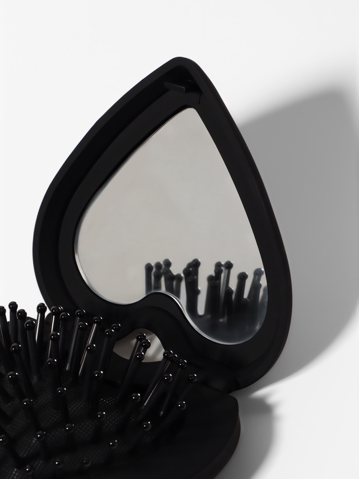 Расчёска массажная «Сердце», складная, с зеркалом, 8×2.5 см, матовая, чёрная 9 фото
